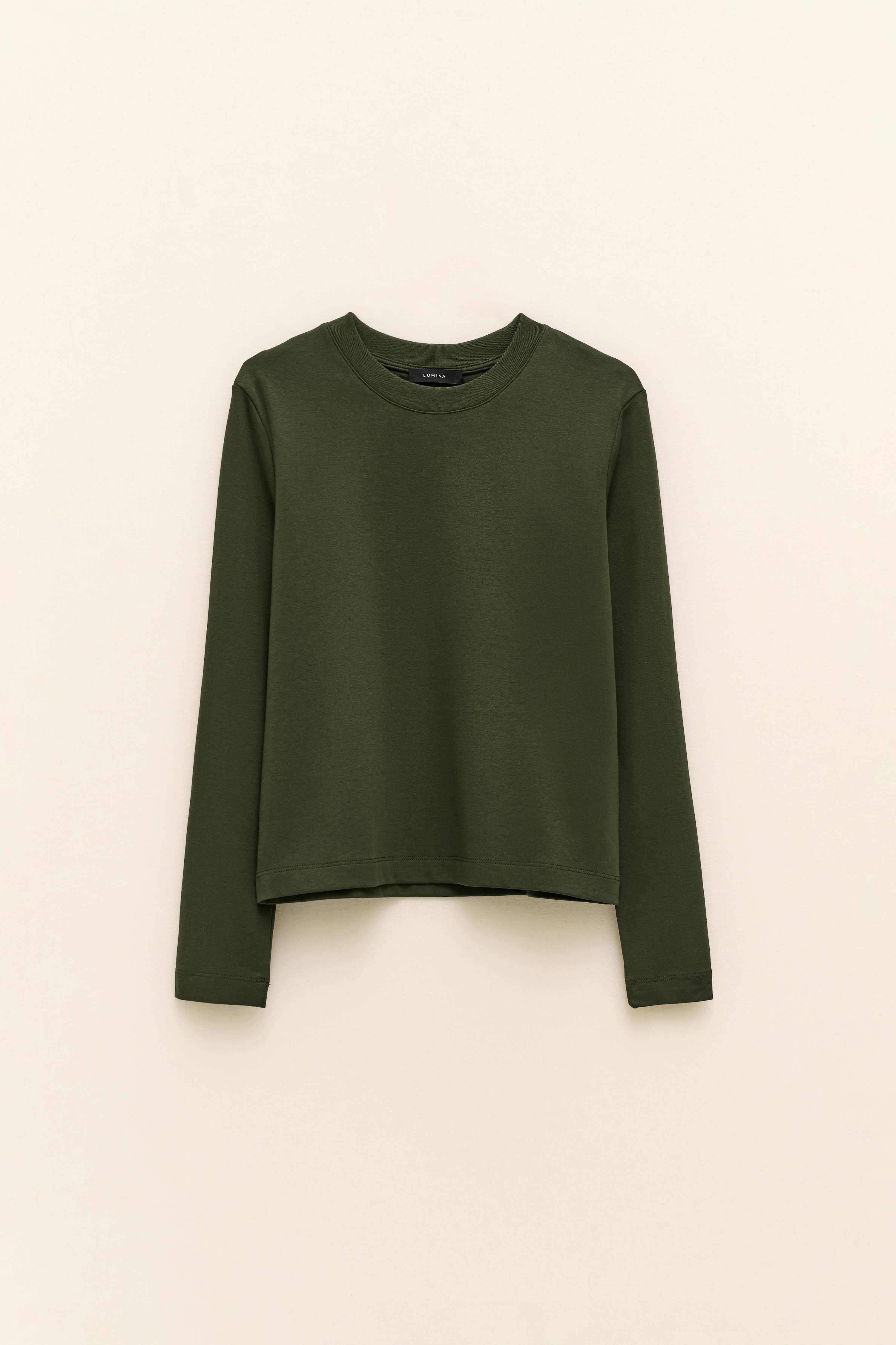 Girocollo e maniche lunghe.