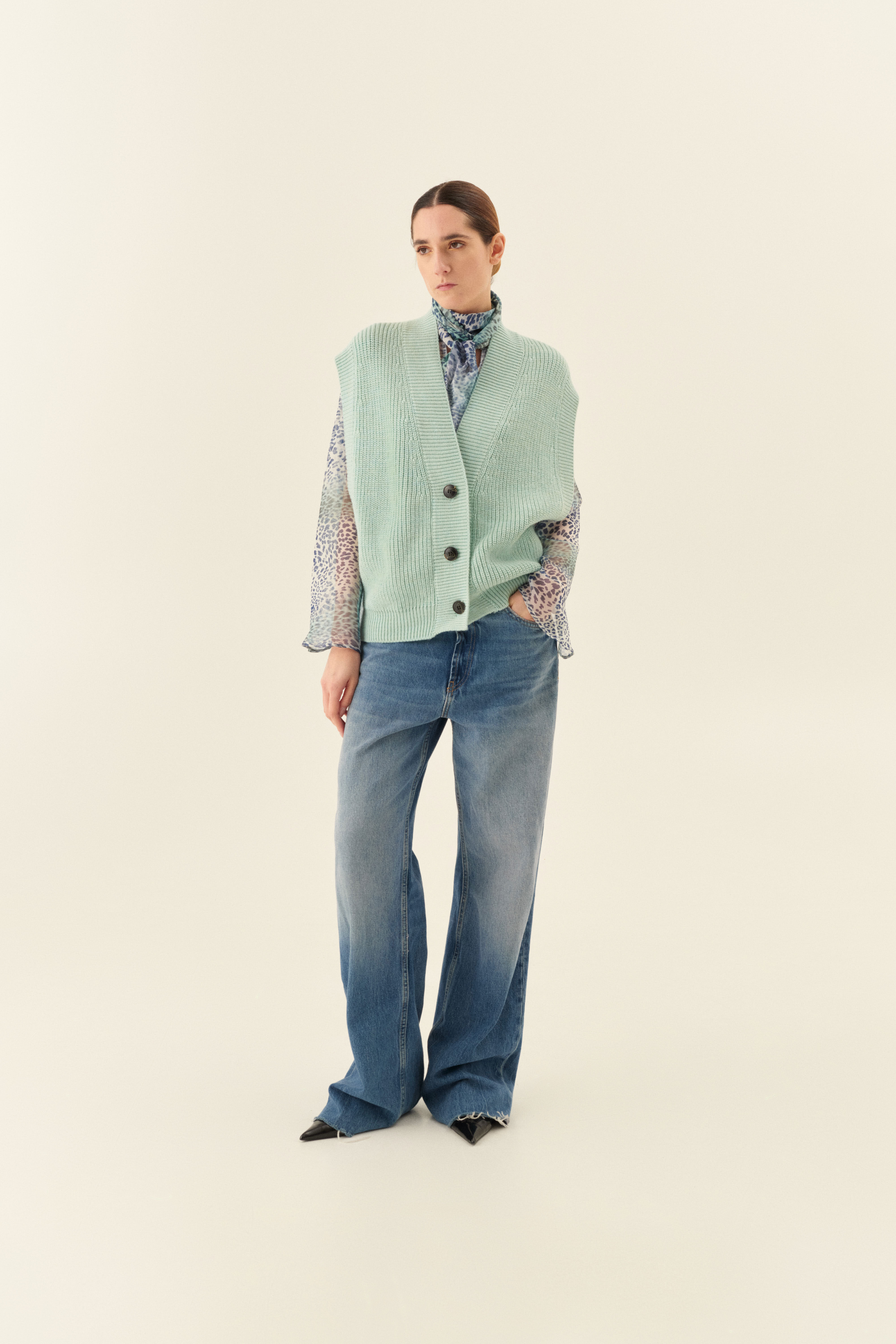 Gilet scollo a V in misto mohair.