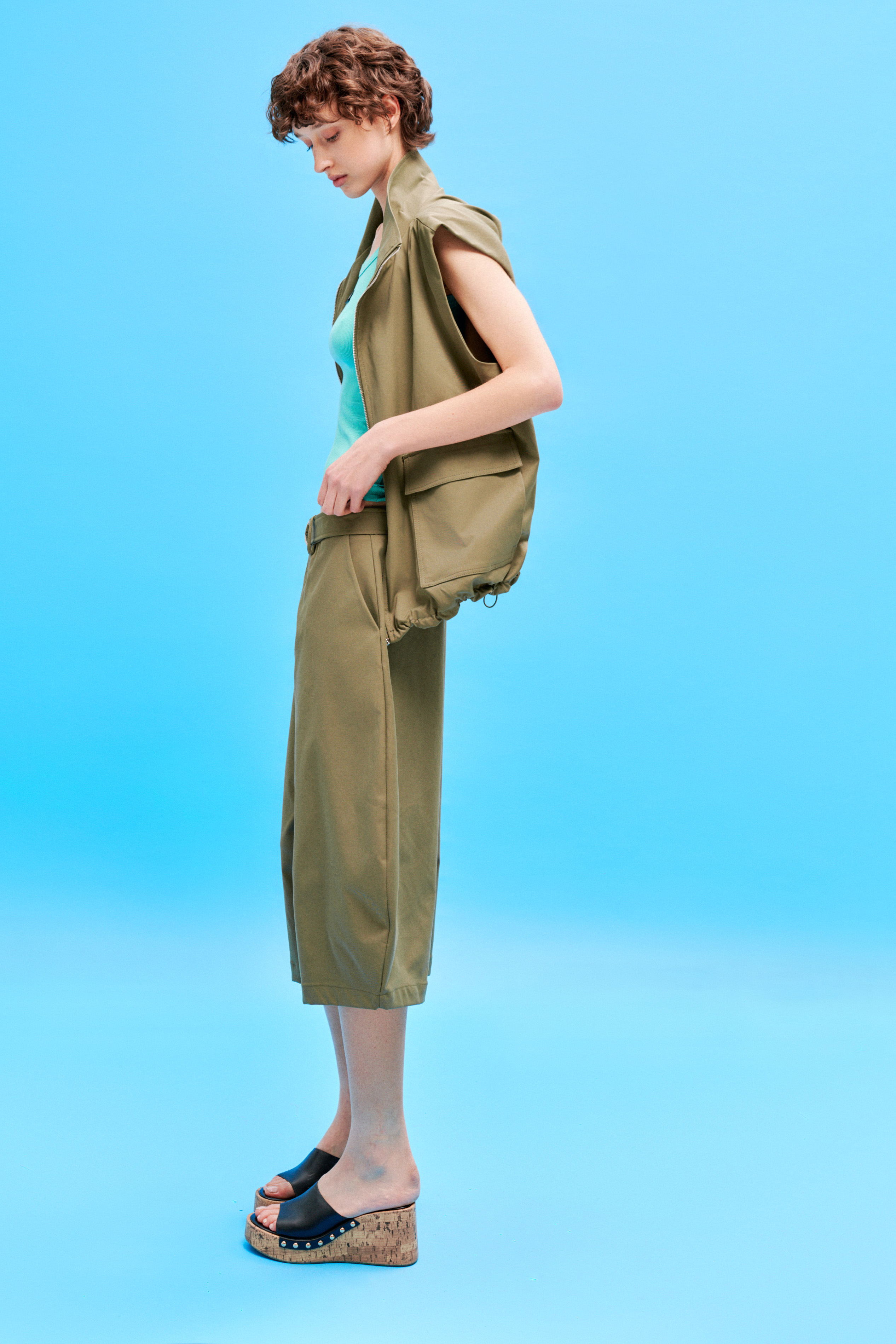 Vita alta elasticizzata con coulisse regolabile.
