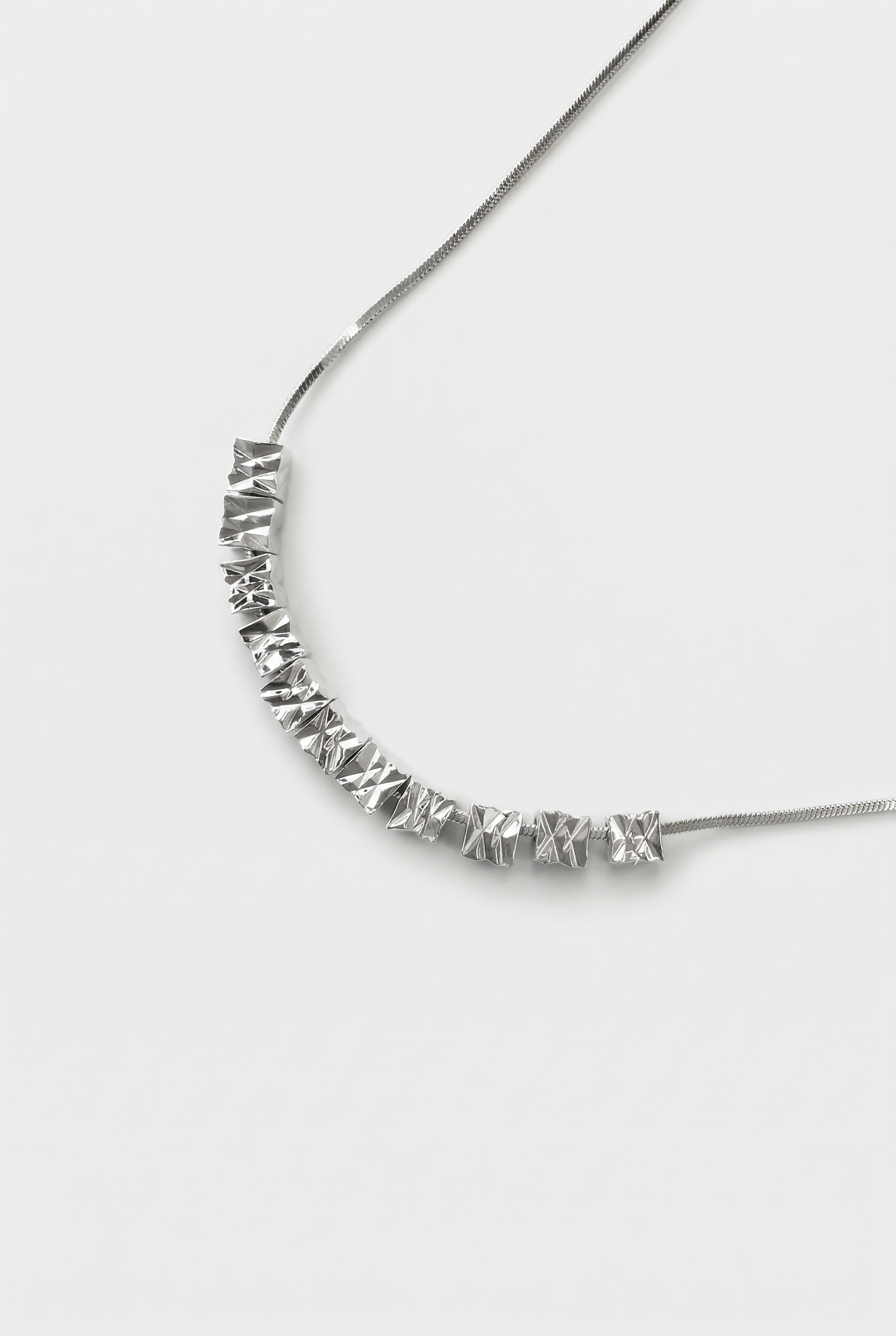 Bracciale rigido a fascia ampia con profilo asimmetrico e volumi sovrapposti.