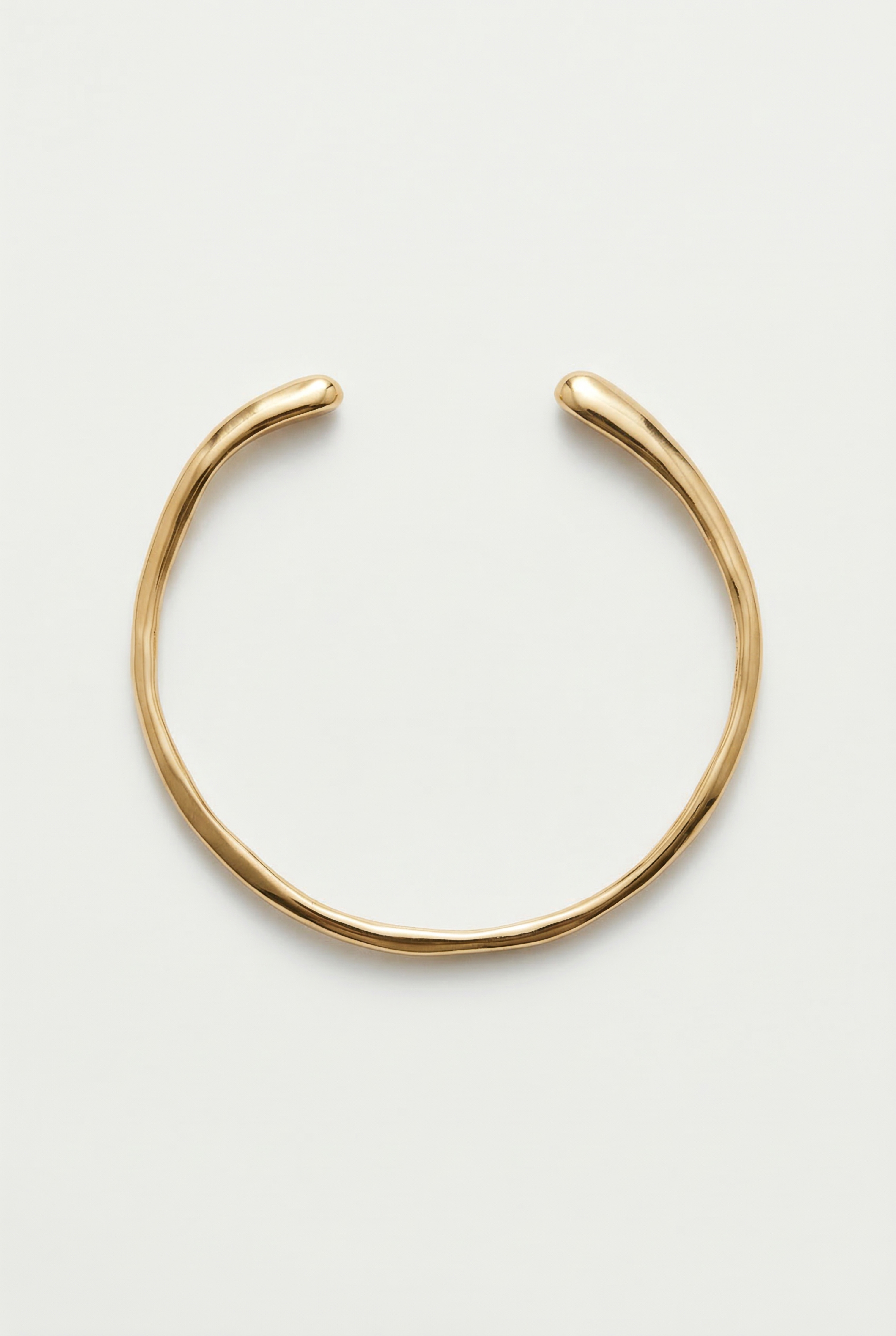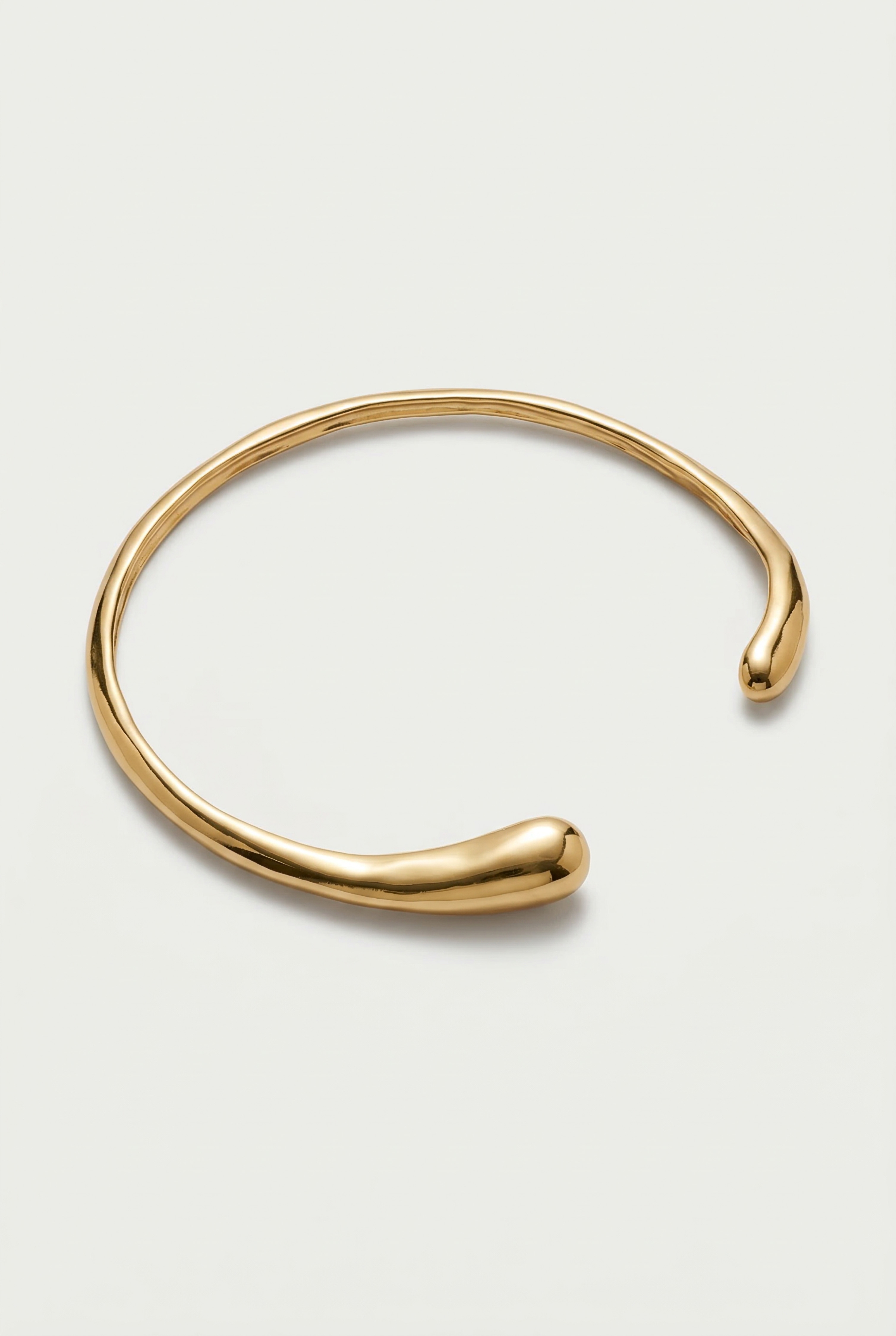 Bracciale rigido a fascia ampia con profilo irregolare e linee fluide.