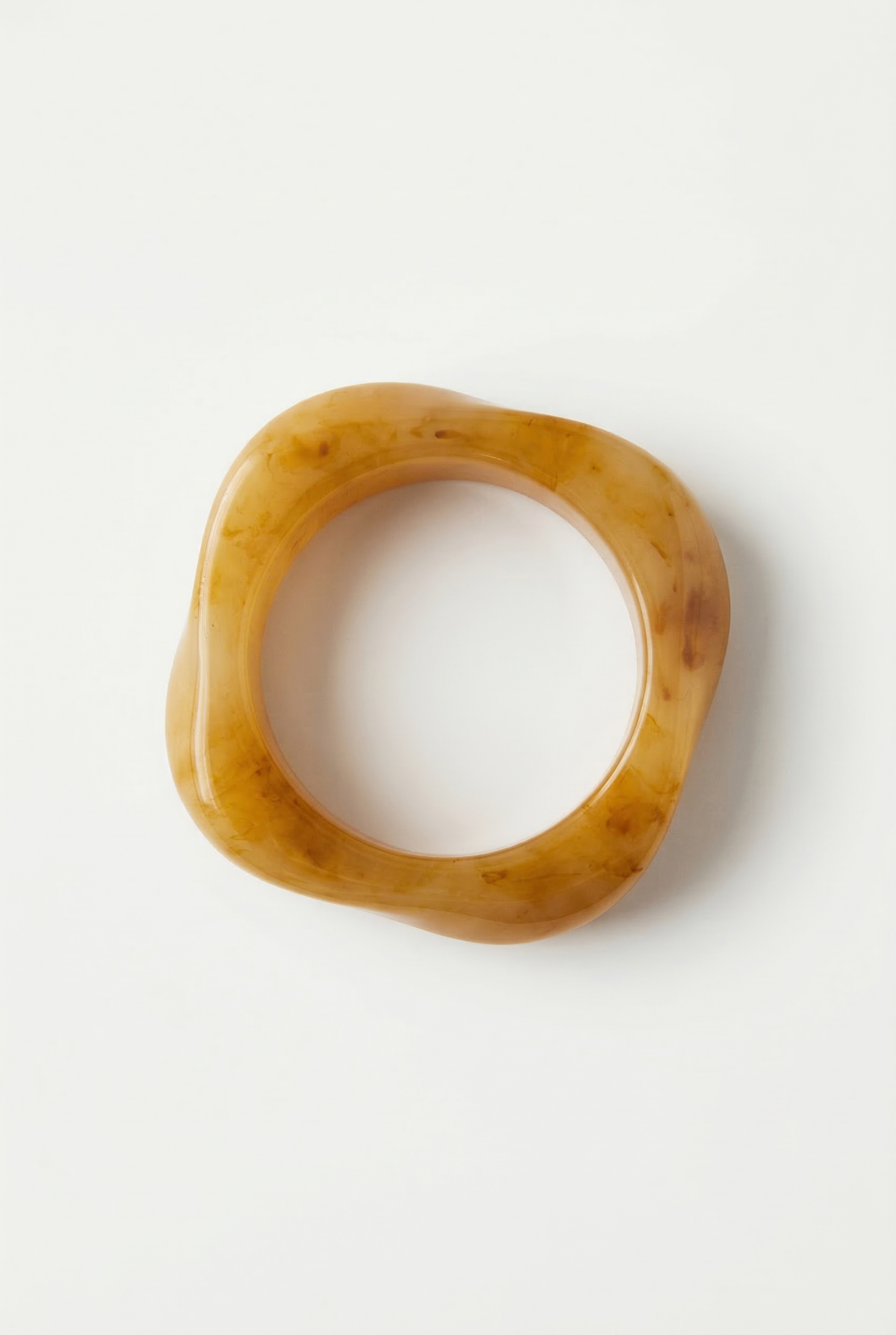 Bracciale rigido in resina a forma ampia con profilo arrotondato.