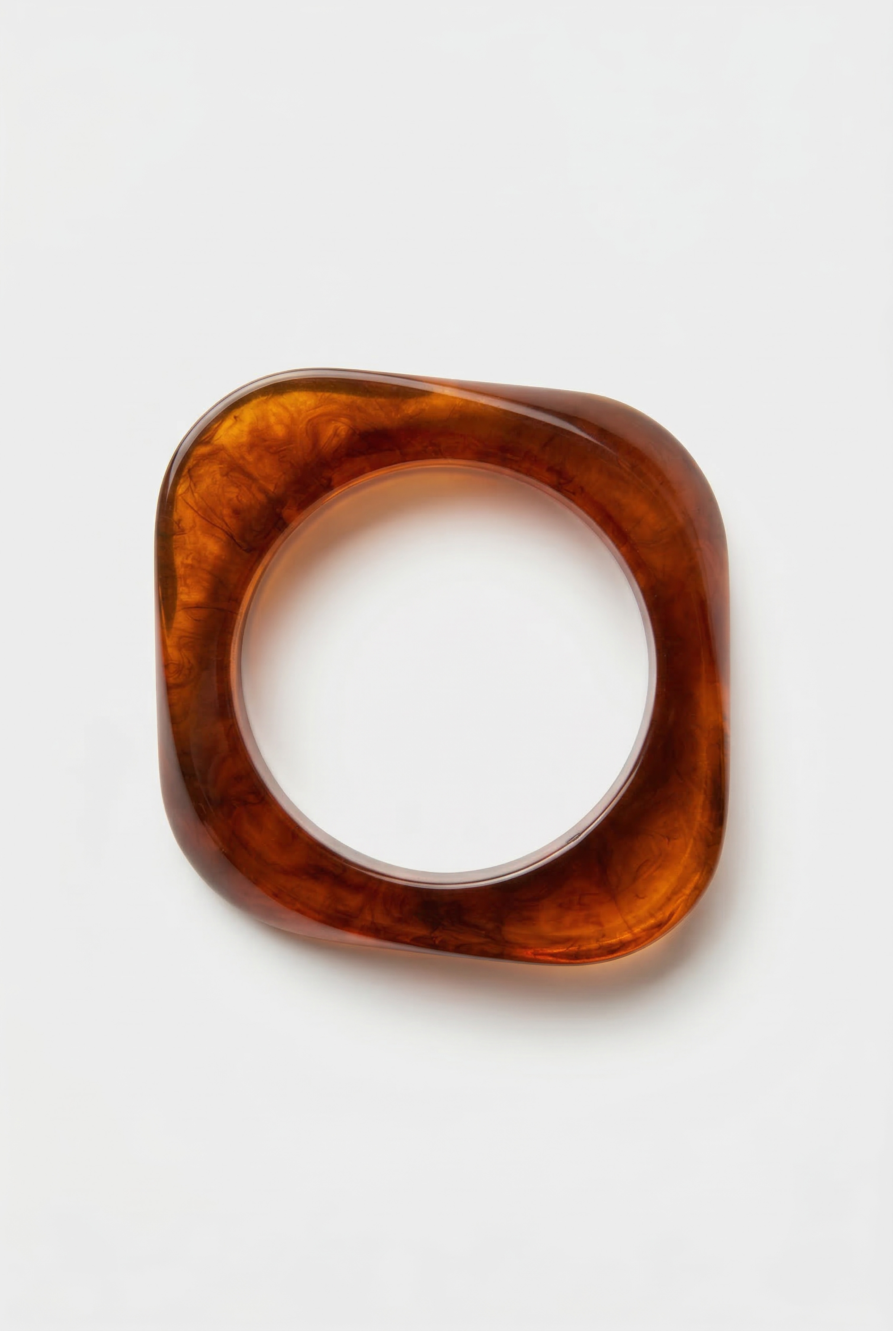 Bracciale rigido in resina a forma ampia con profilo arrotondato.