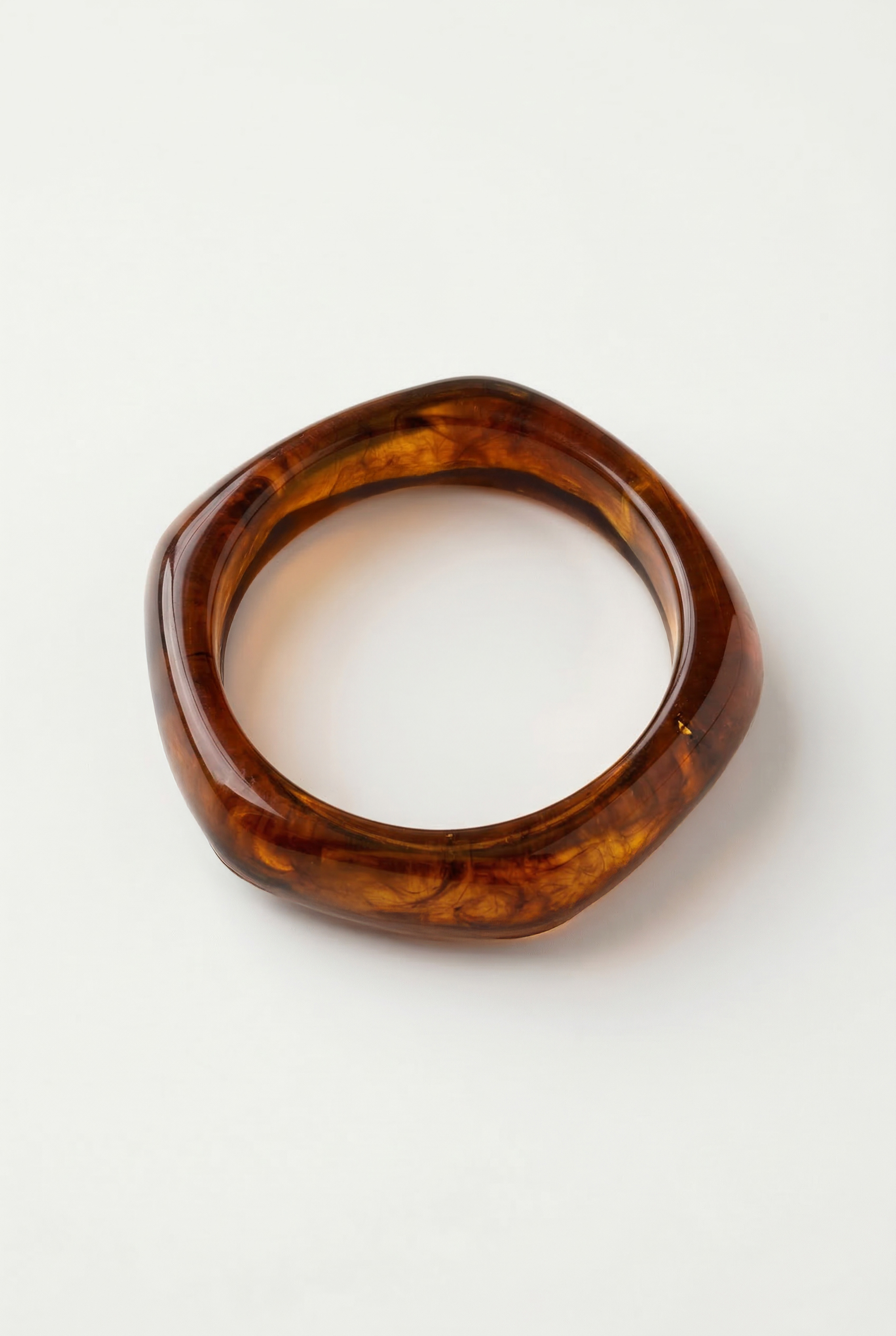 Bracciale rigido in resina a forma ampia con profilo arrotondato.