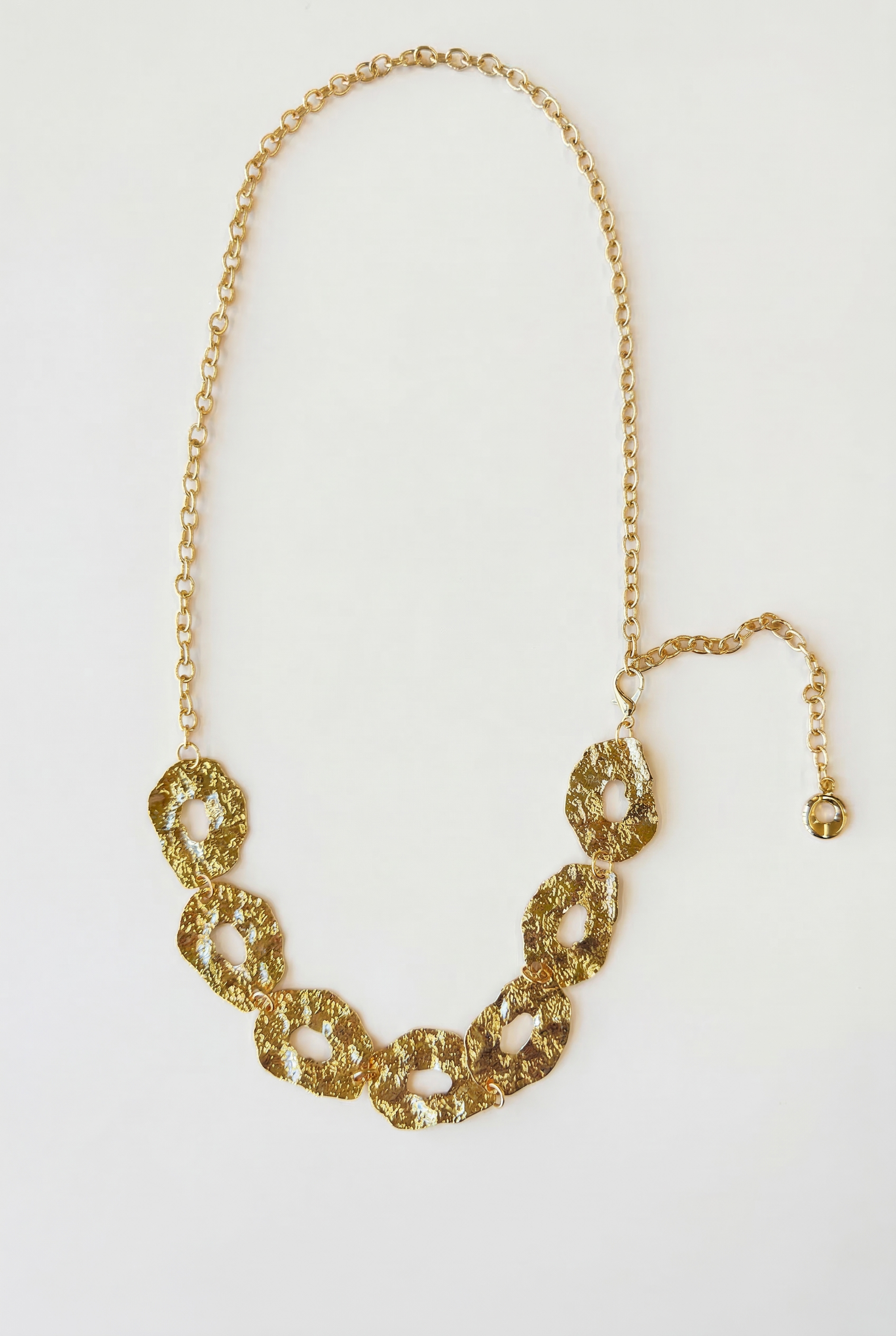Cintura gioiello con struttura composta da elementi metallici a forma di foglia.