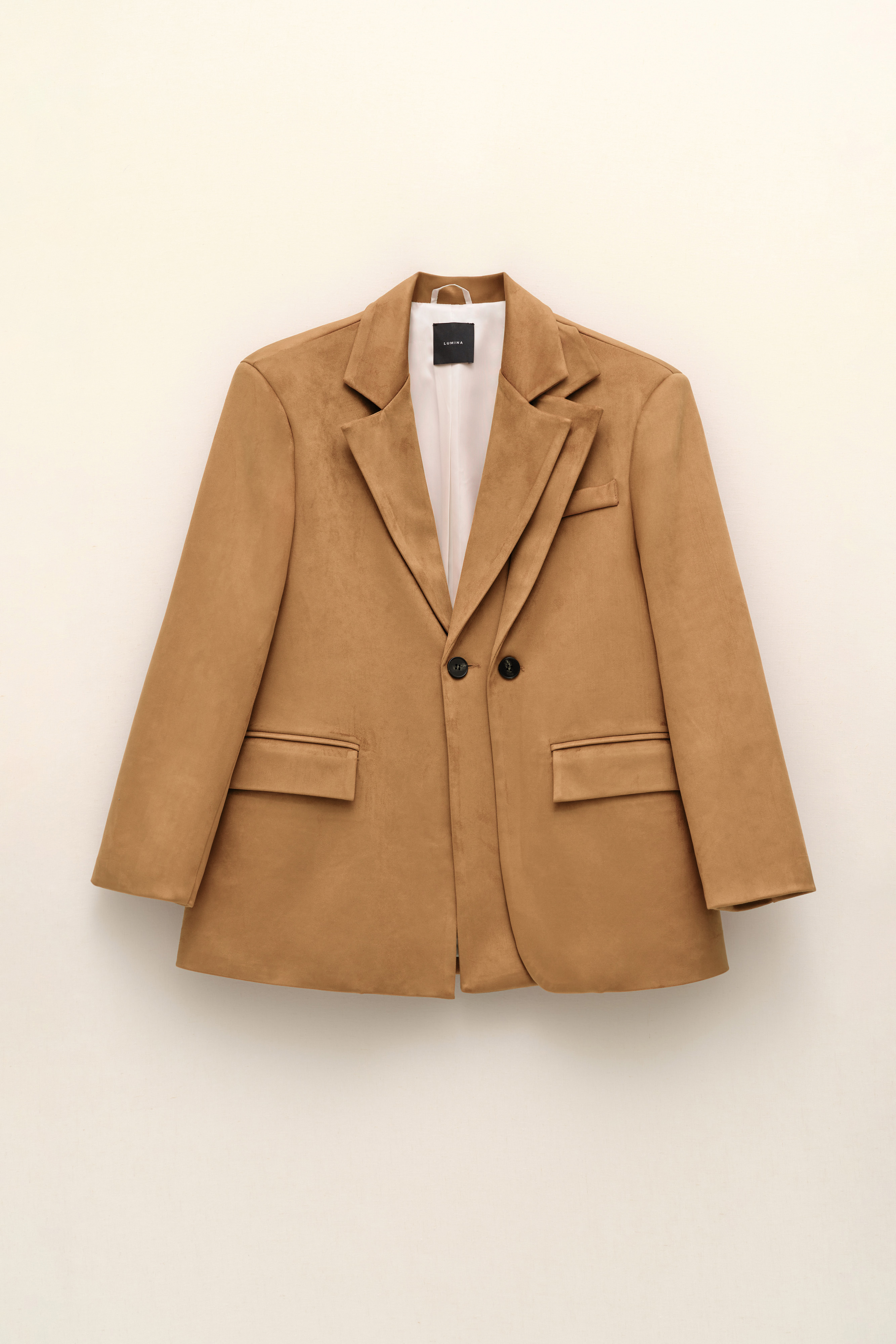 Blazer in camoscio sintetico. Dettaglio effetto doppio strato. Collo a revers. Tasche con patta sul davanti. Fit regolare, disponibile in taglia UNICA.