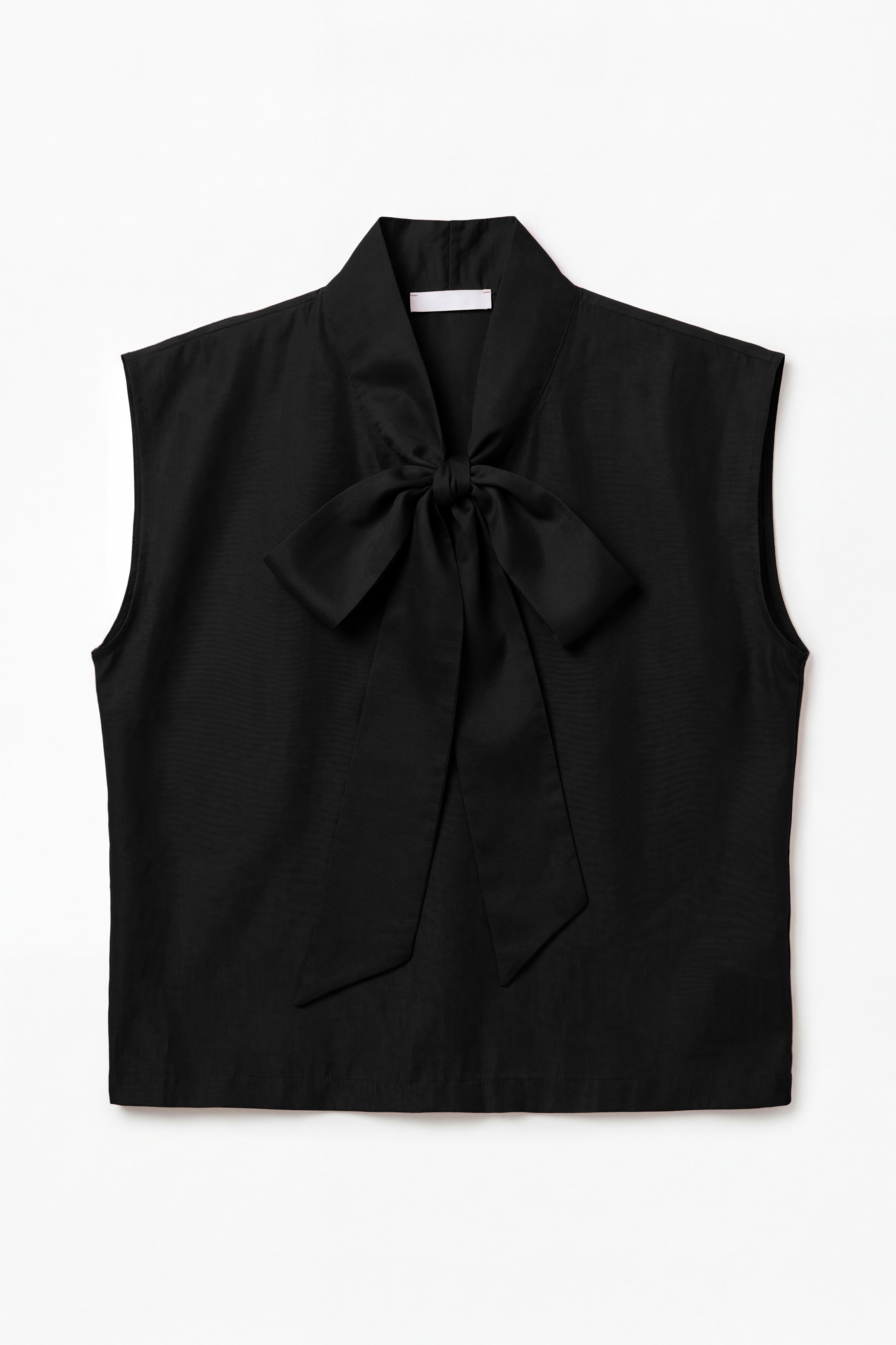 Blusa smanicata semitrasparente in misto lino. Colletto a punta. Tasca applicata sul petto. Dettaglio bottoni sulle spalle per regolare e trasformare la linea del capo da capo strutturato a liscio. Chiusura frontale con bottoni tono su tono. Vestibilità regolare, disponibile in taglia S/M, M/L.