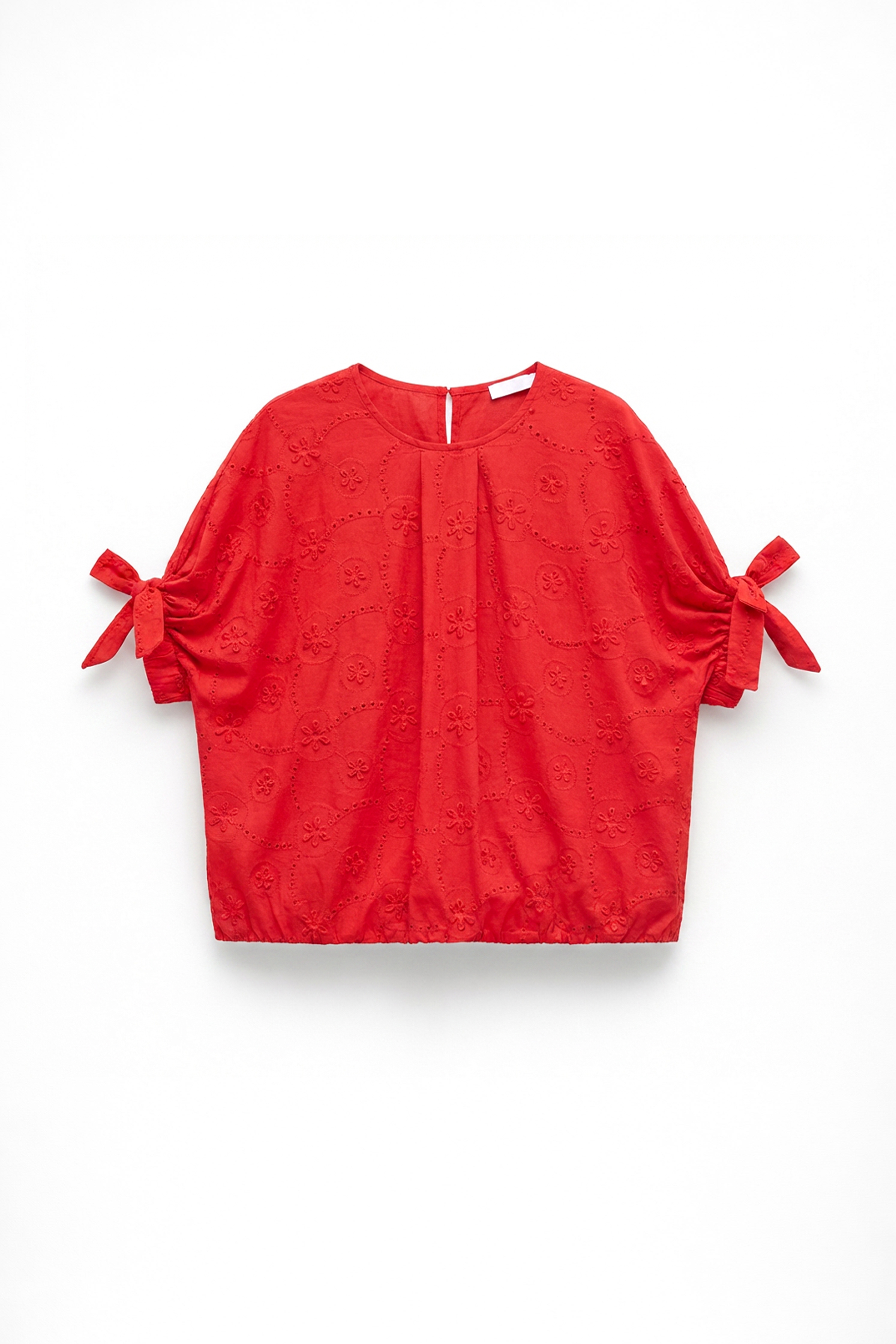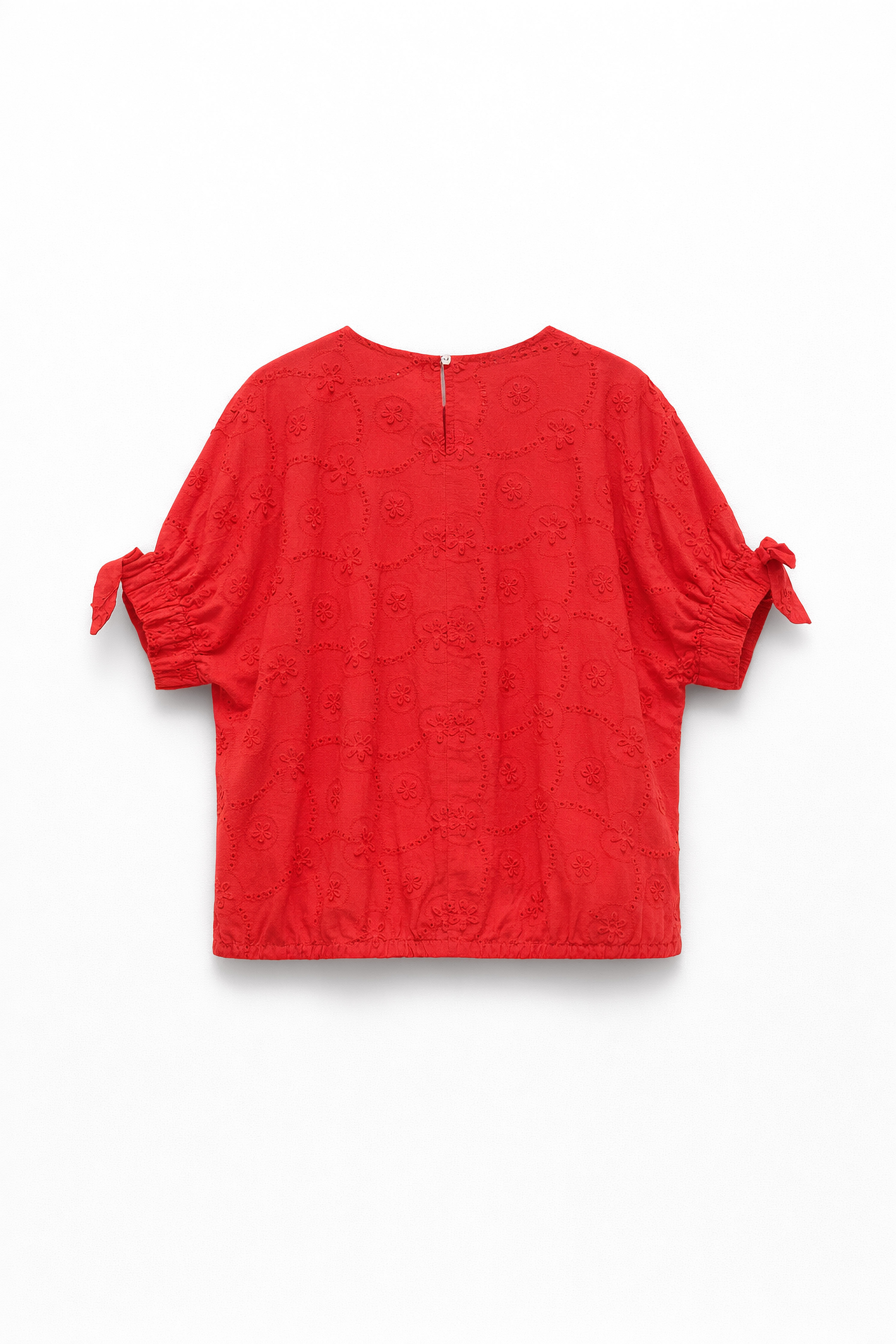 Pantaloni sangallo traforato con ricami floreali in rilievo.
