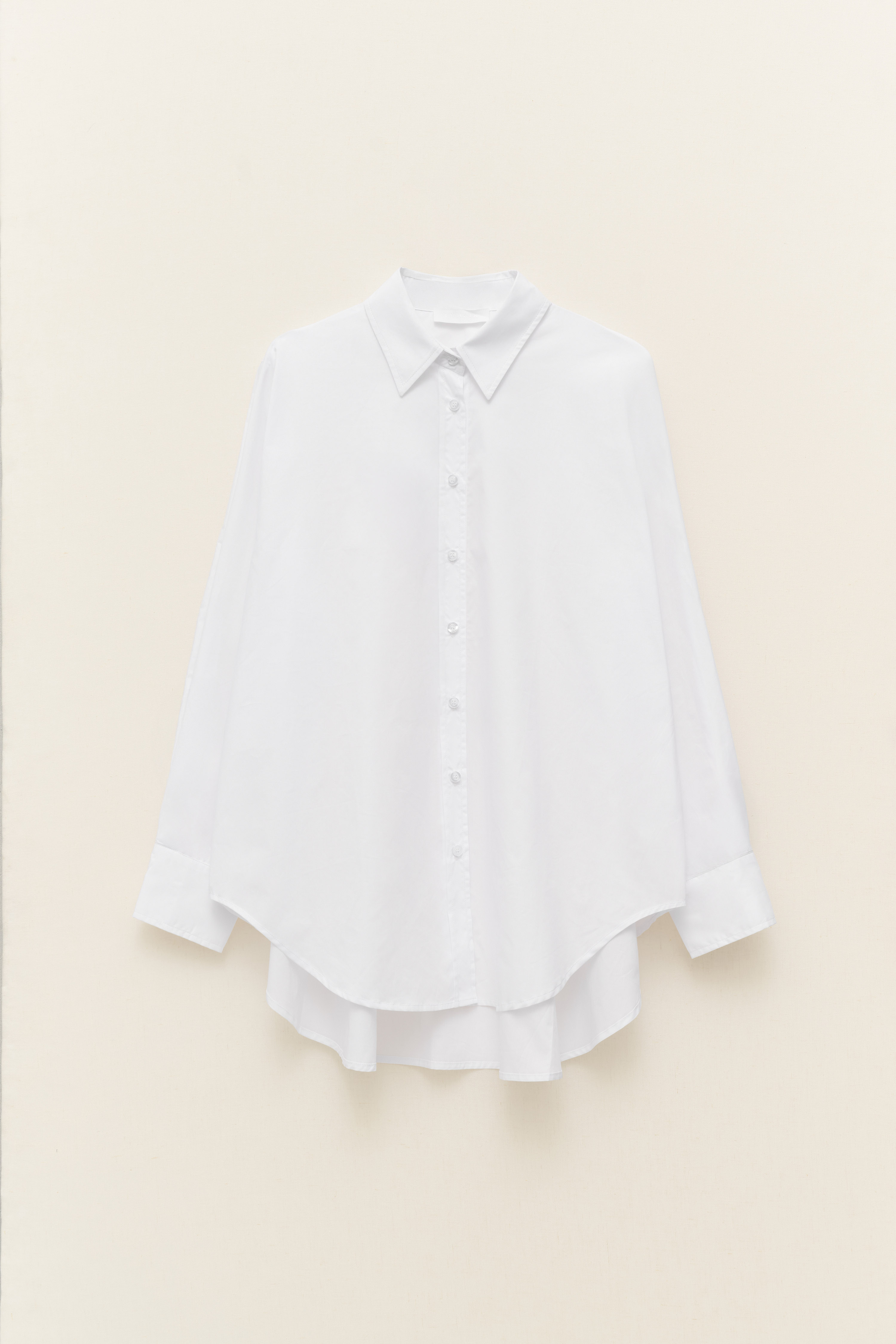 Colletto a punta. Maniche corte. Tasca applicata sul petto.