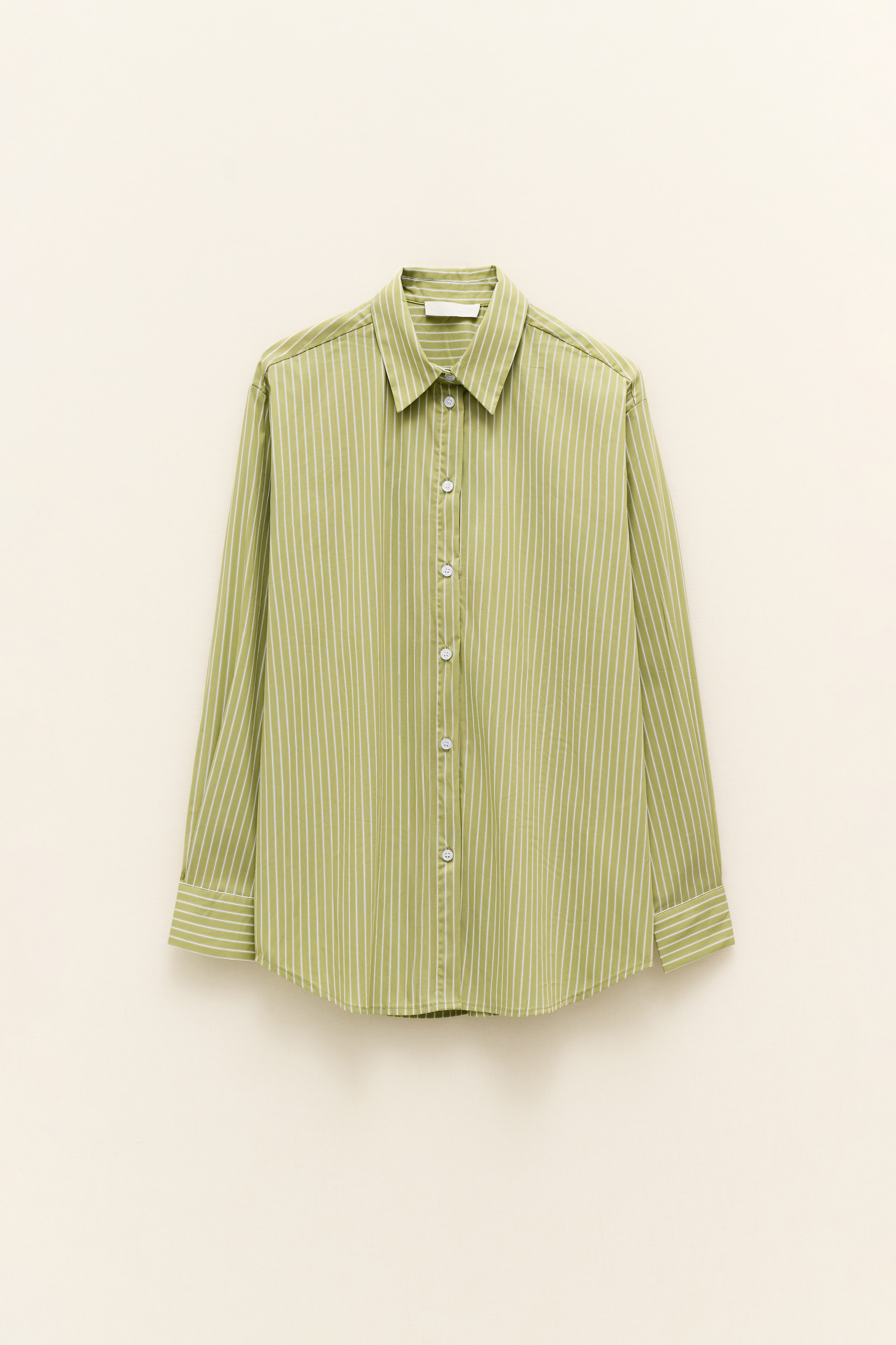 Collo alla coreana. Maniche lunghe con polsino.