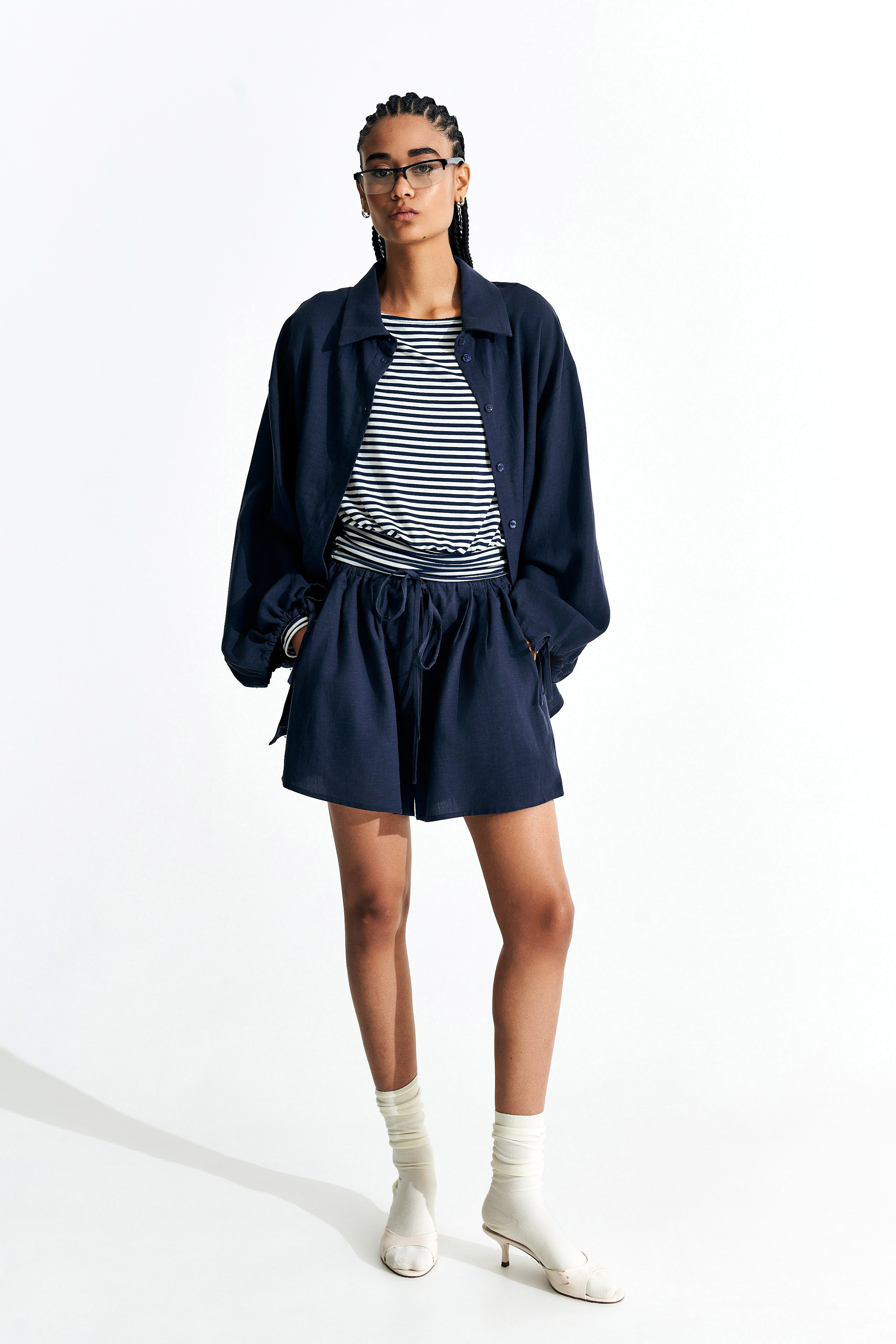 Camicia in tessuto con lavorazioni jacquard a righe in rilievo.