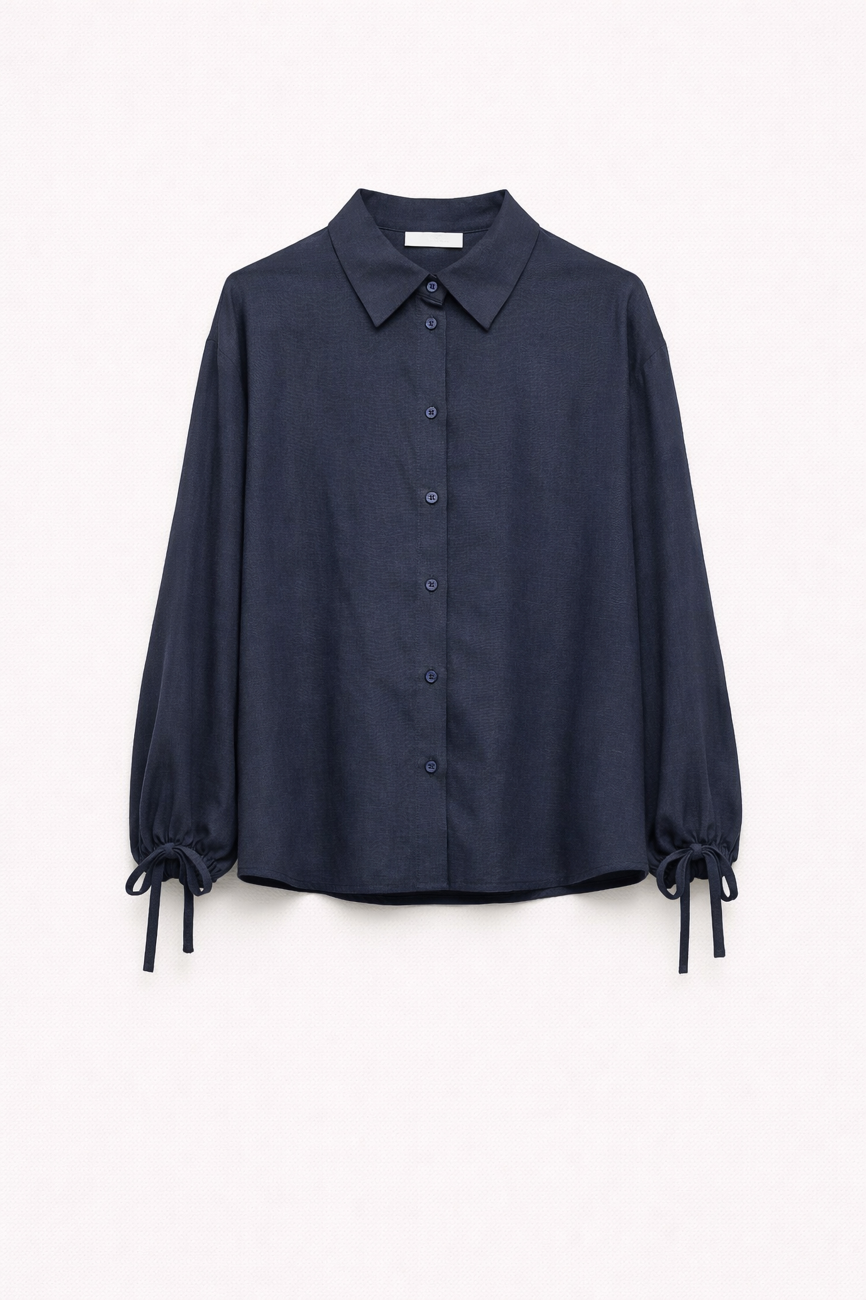 Colletto a punta. Maniche corte. Tasca applicata sul petto.