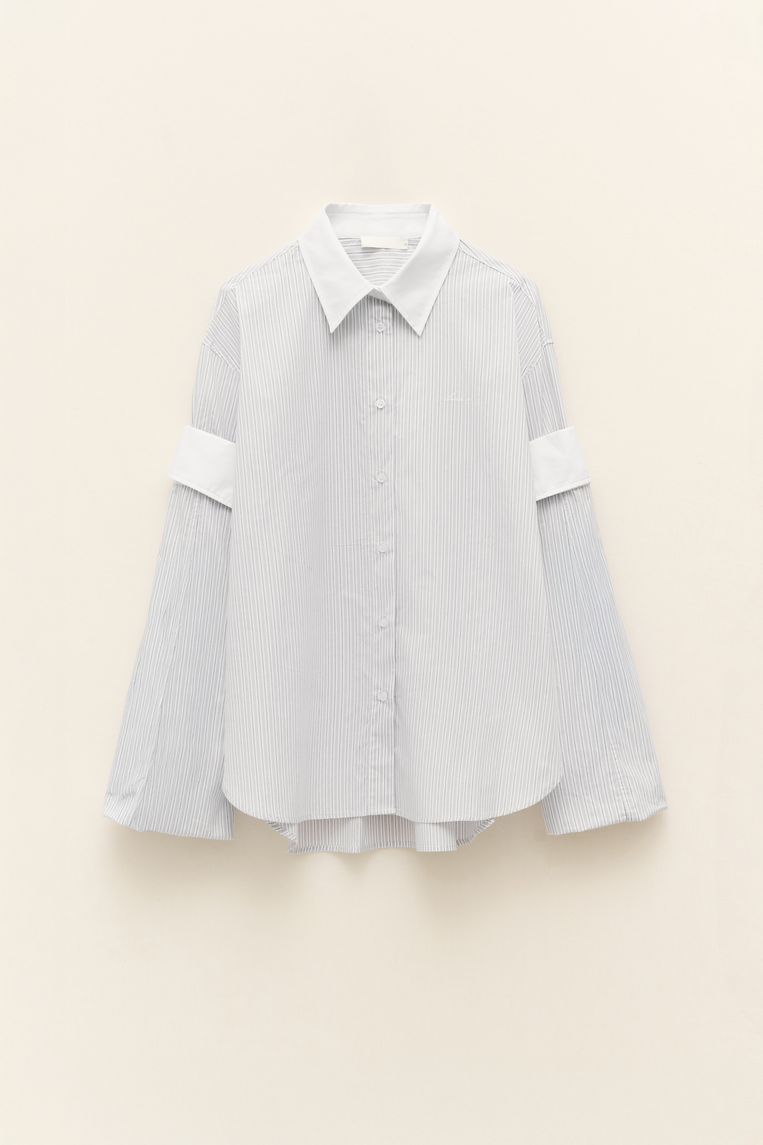 Collo alla coreana. Maniche lunghe con polsino.