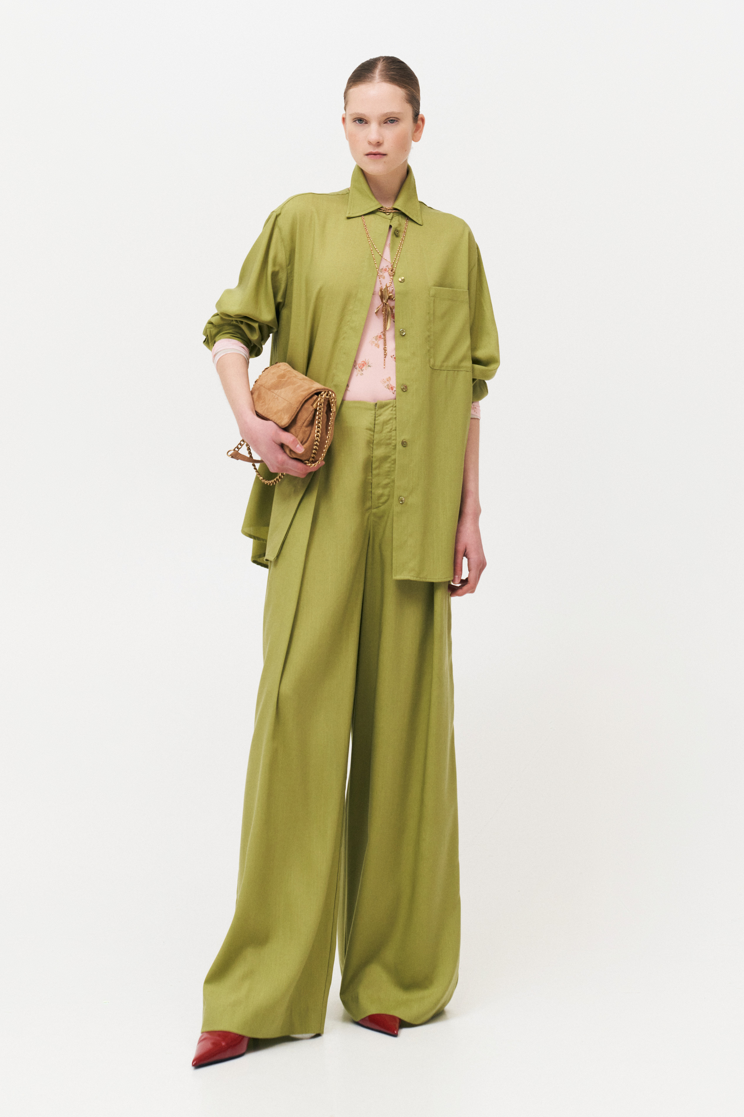 Camicia realizzata in 100% rayon. Maniche lunghe con polsino alto e bottoni. Collo a punta classico. Chiusura frontale con bottoni. Vestibilità morbida, disponibile in taglia S/M, M/L.