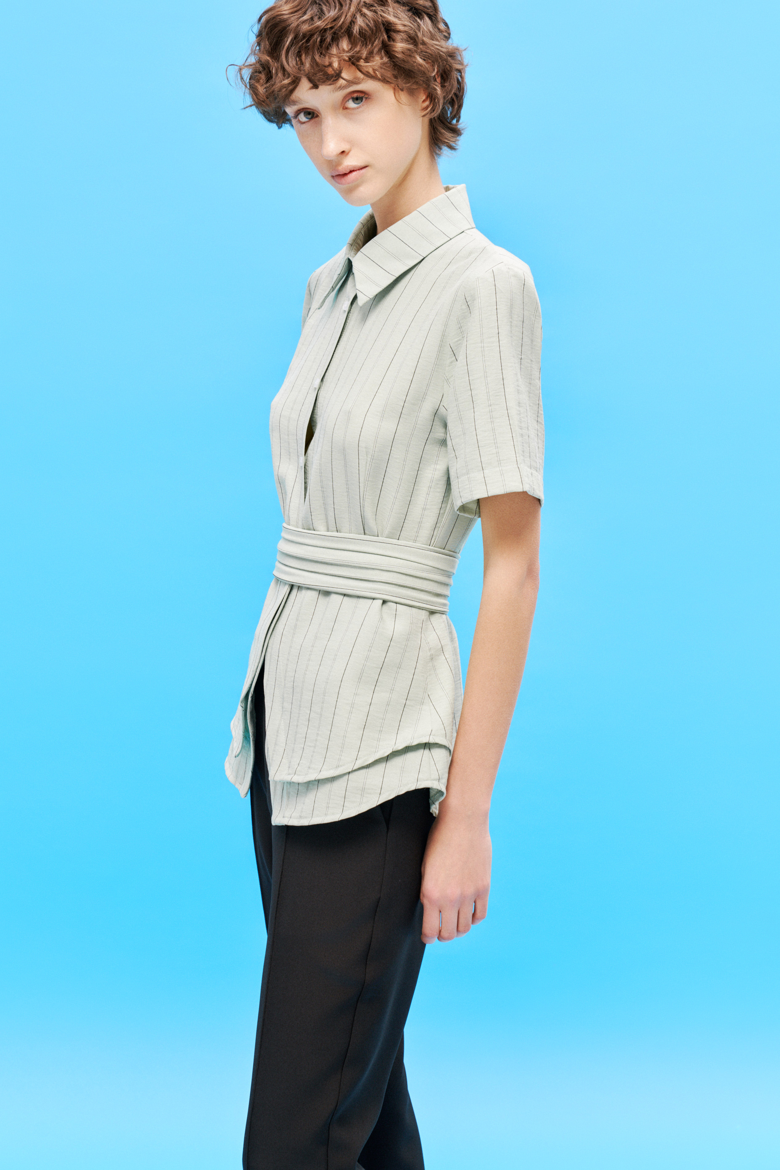 Colletto a punta. Maniche corte.