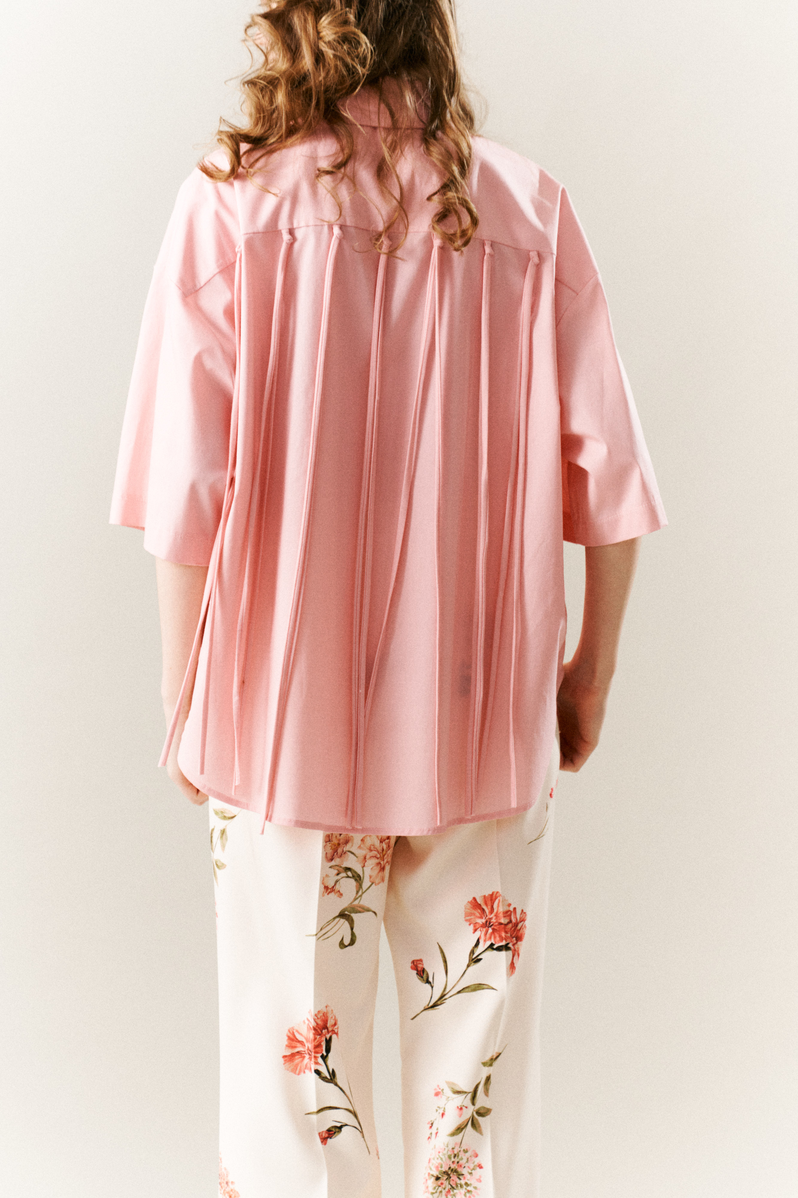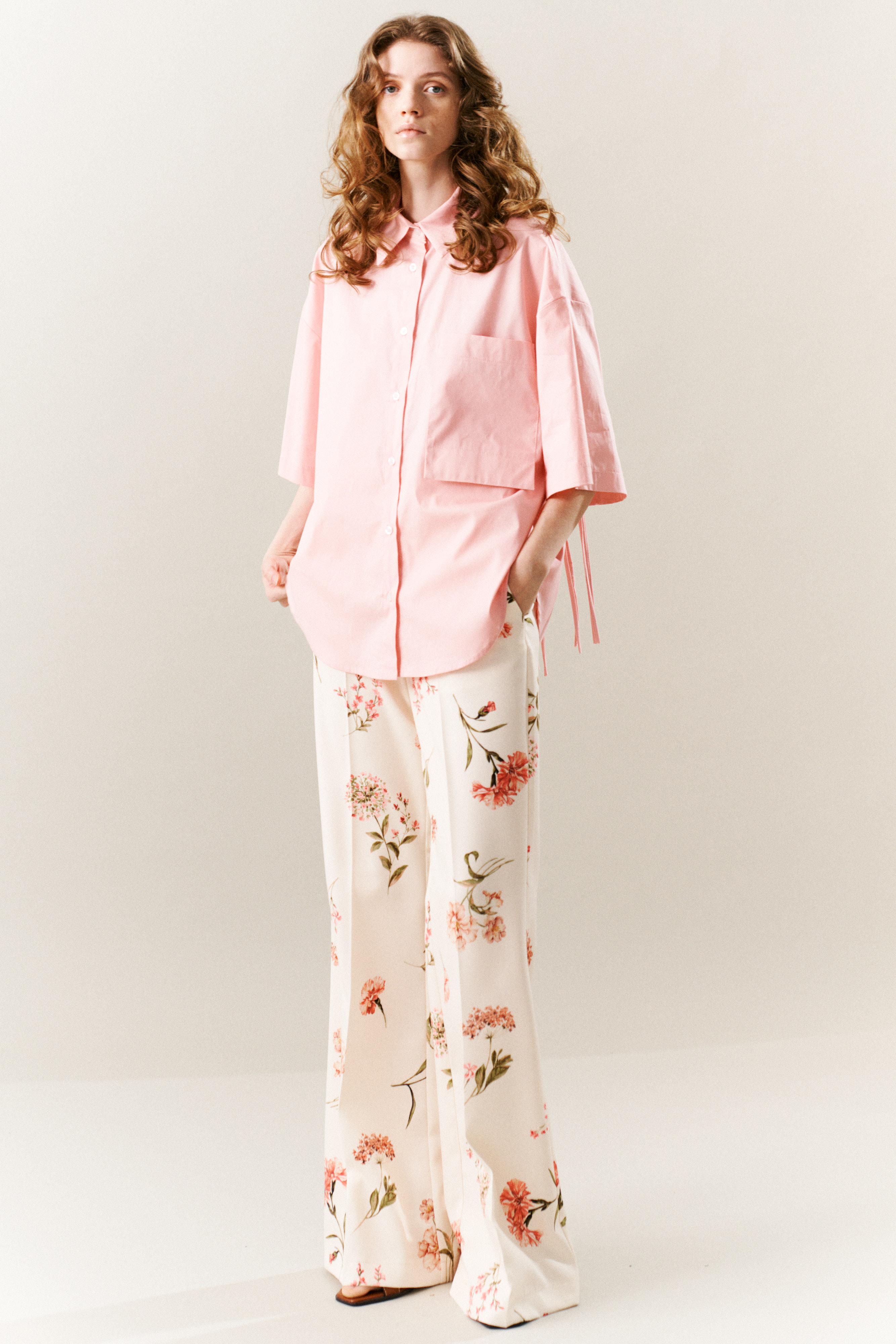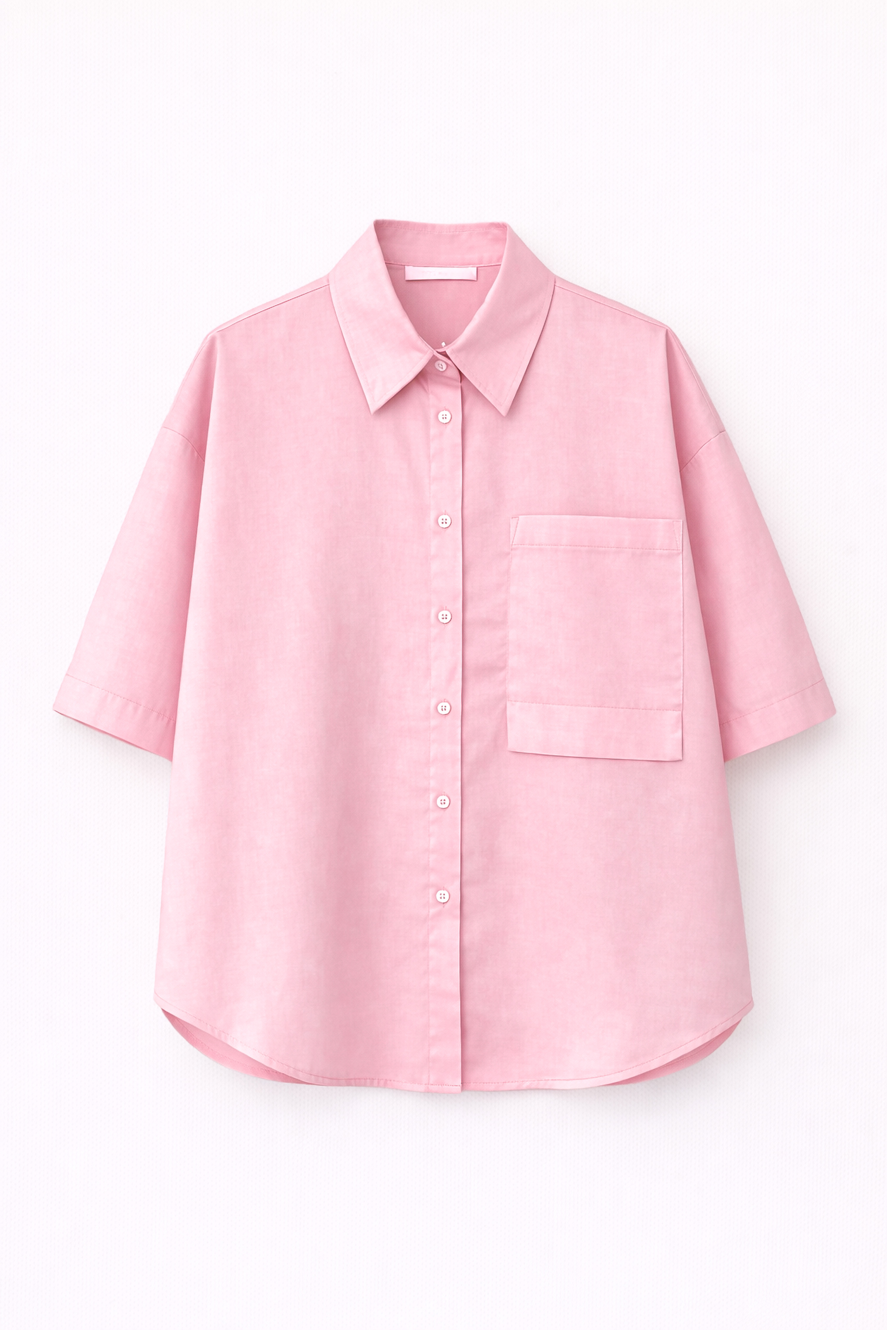 Colletto a punta. Maniche corte. Tasca applicata sul petto.