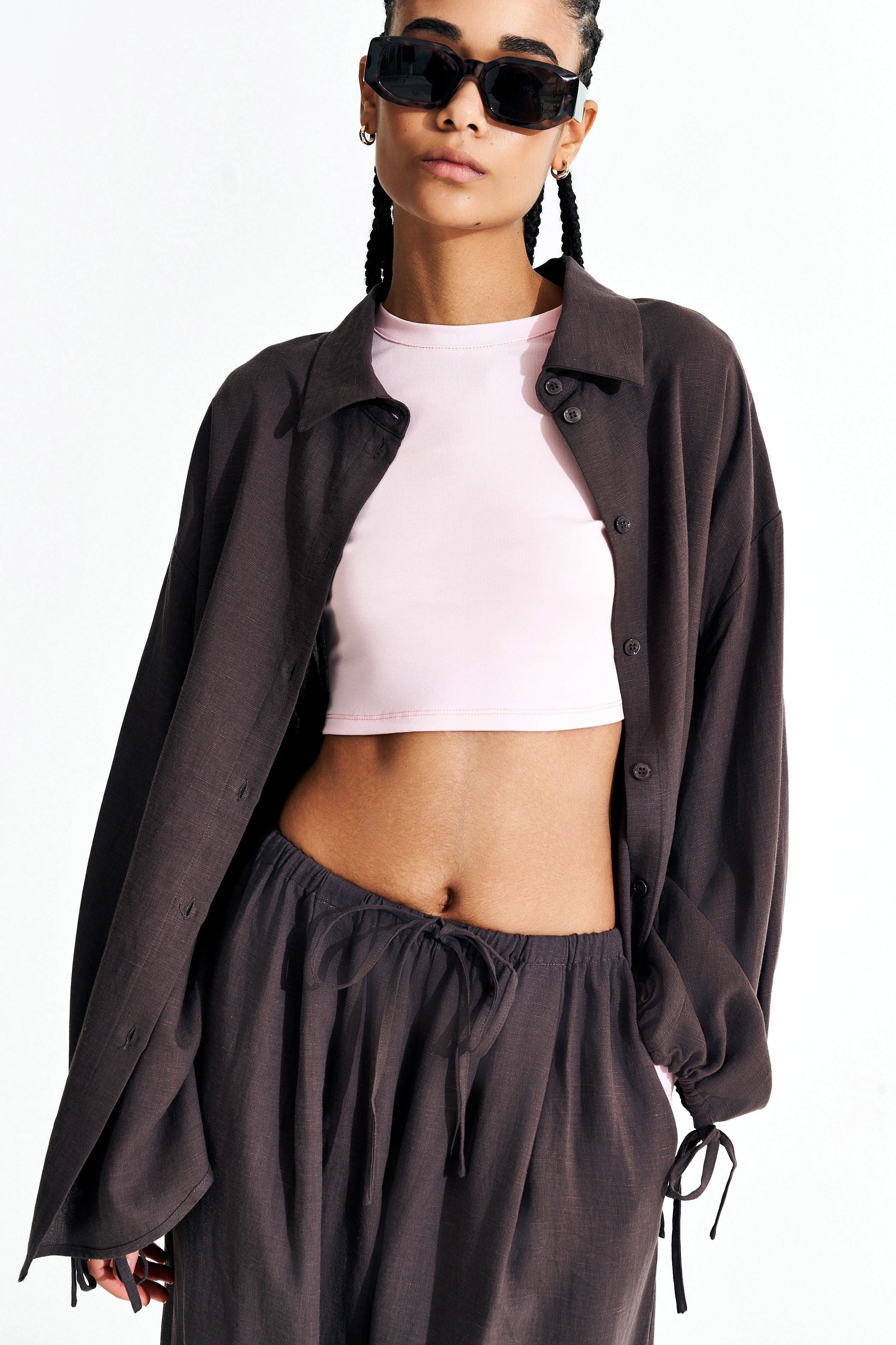 Fondo con laccetti regolabili per effetto arricciato.