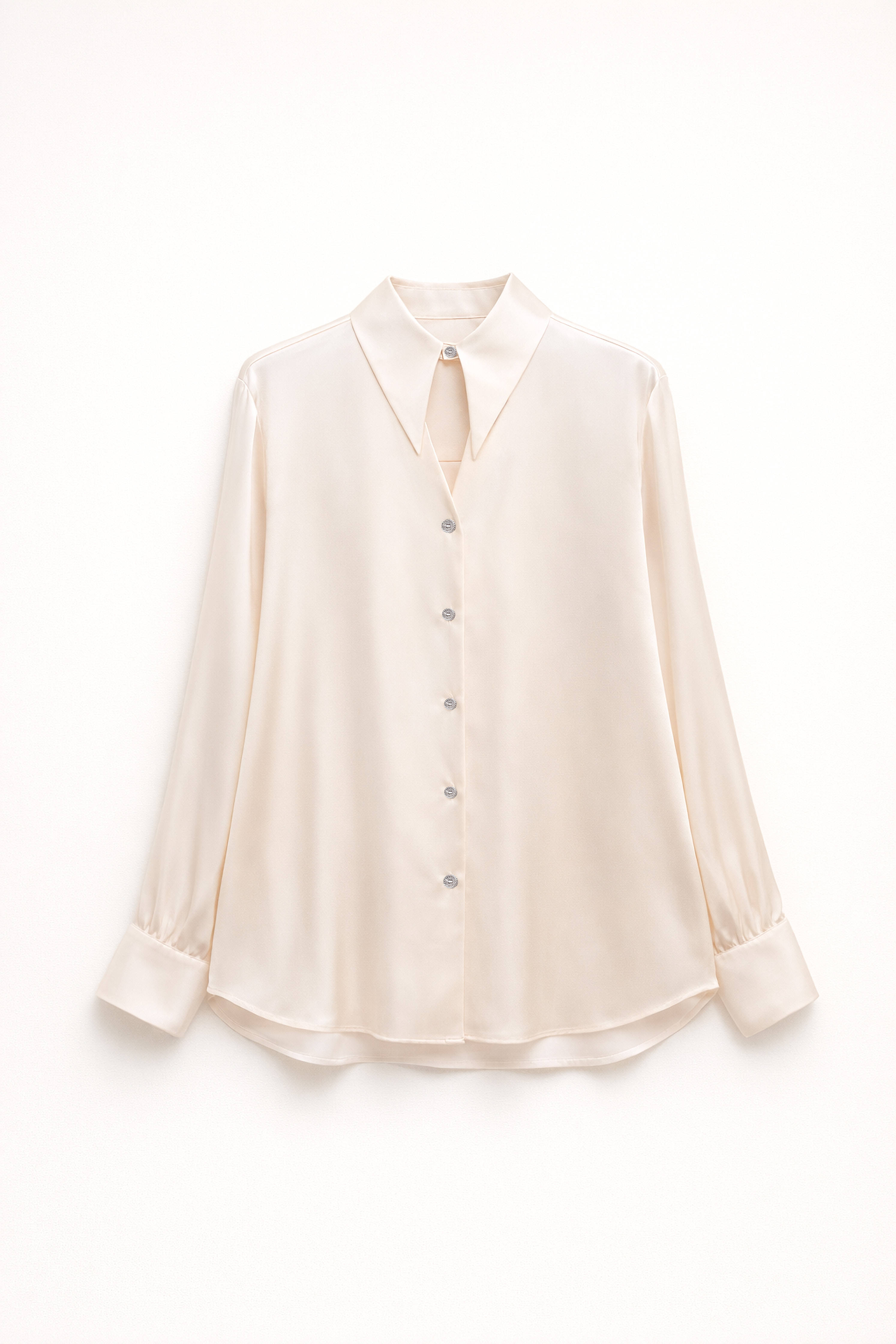 Colletto a punta. Maniche corte. Tasca applicata sul petto.