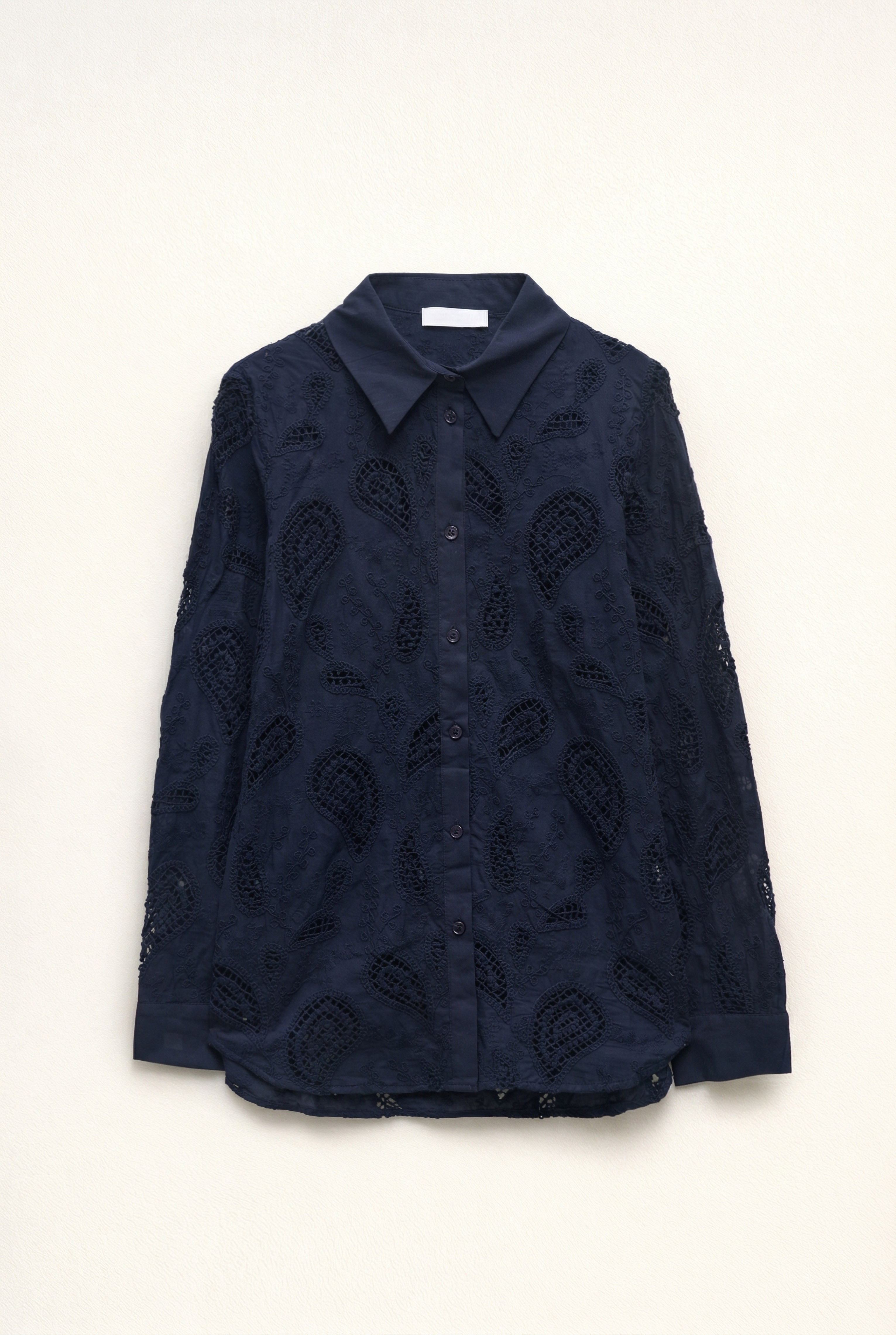Camicia corta con ricami traforati e motivo decorativo all-over.