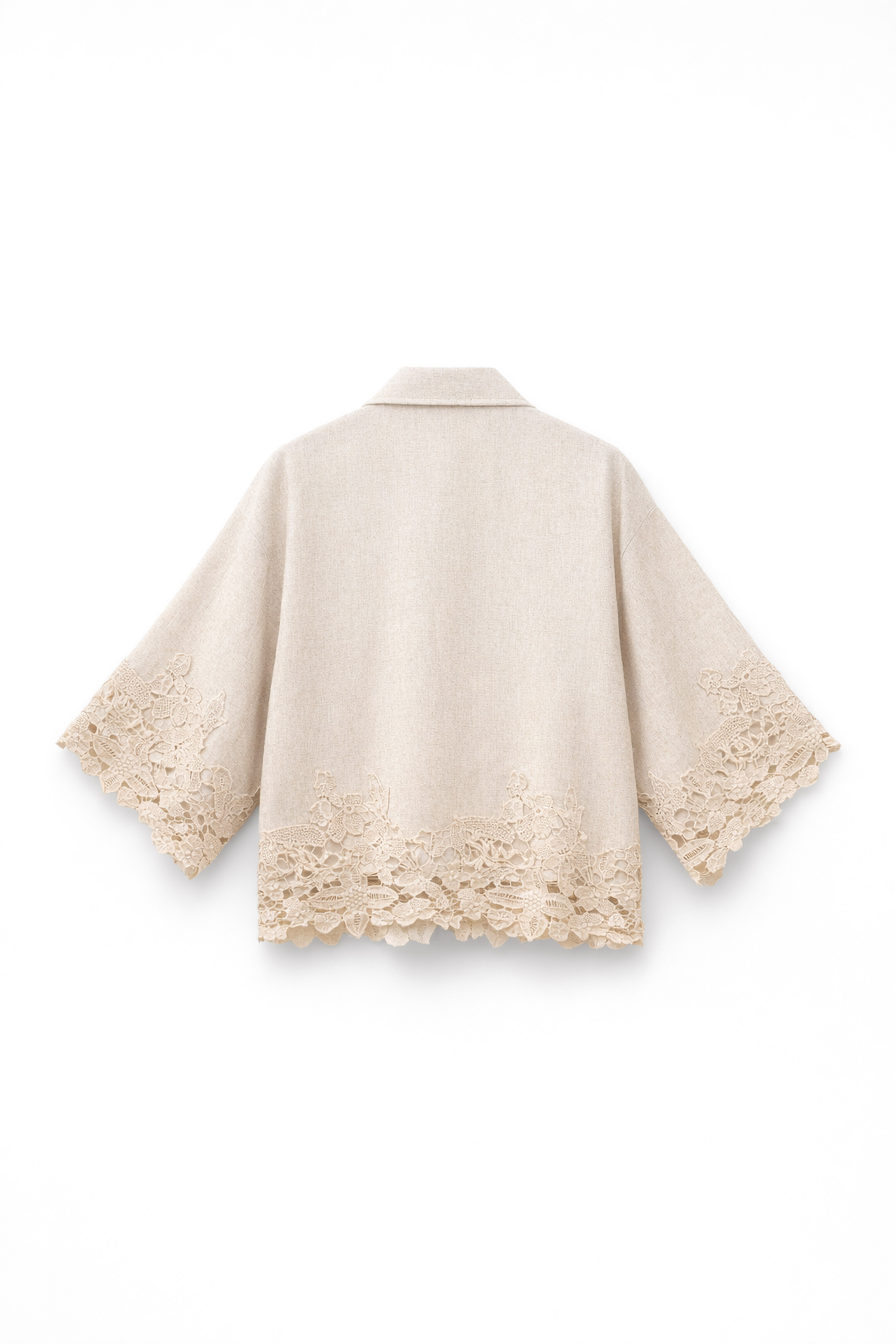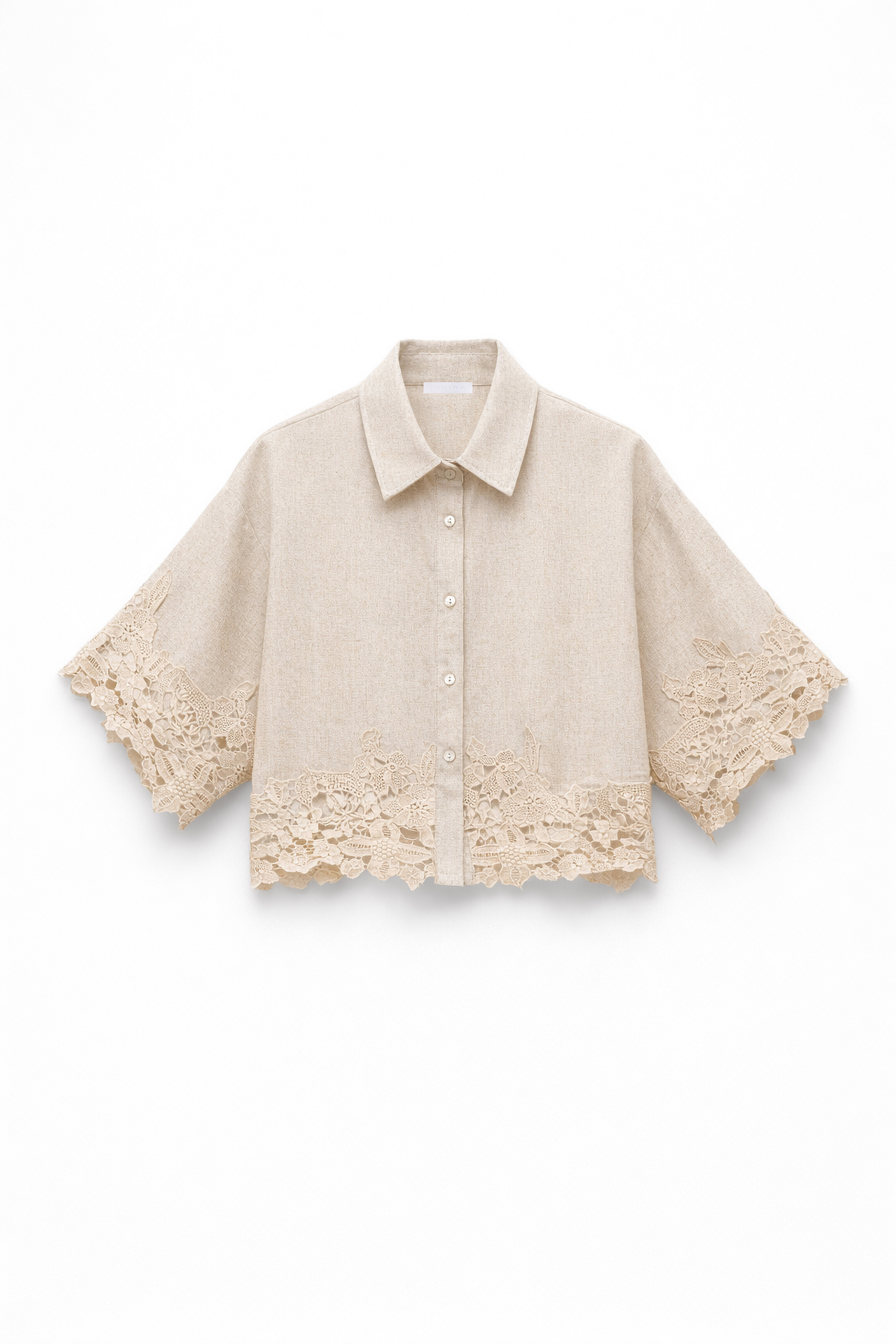 Camicia corta con ricami traforati e motivo decorativo all-over.