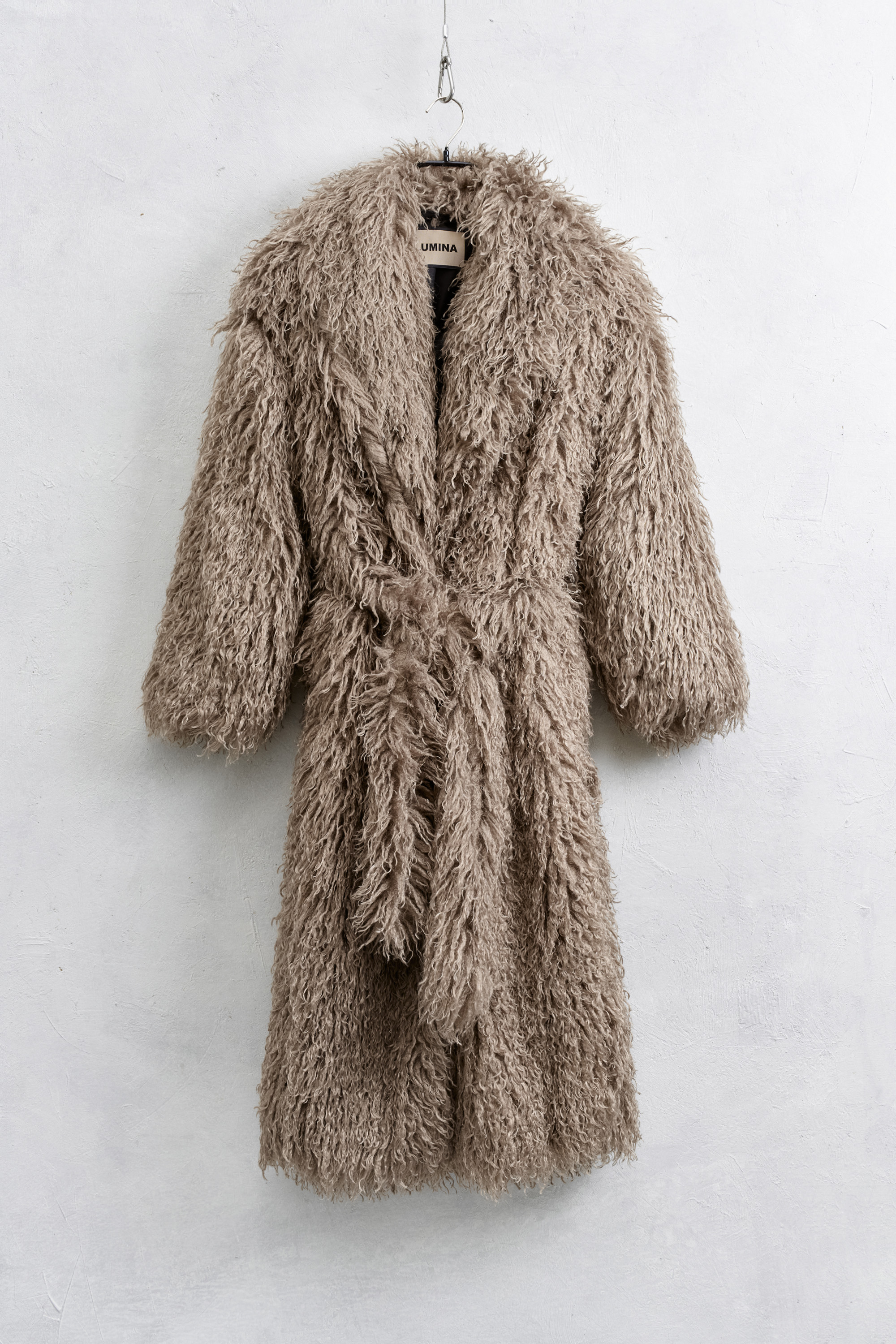 Capotto lungo realizzato in pelliccia sintetica.