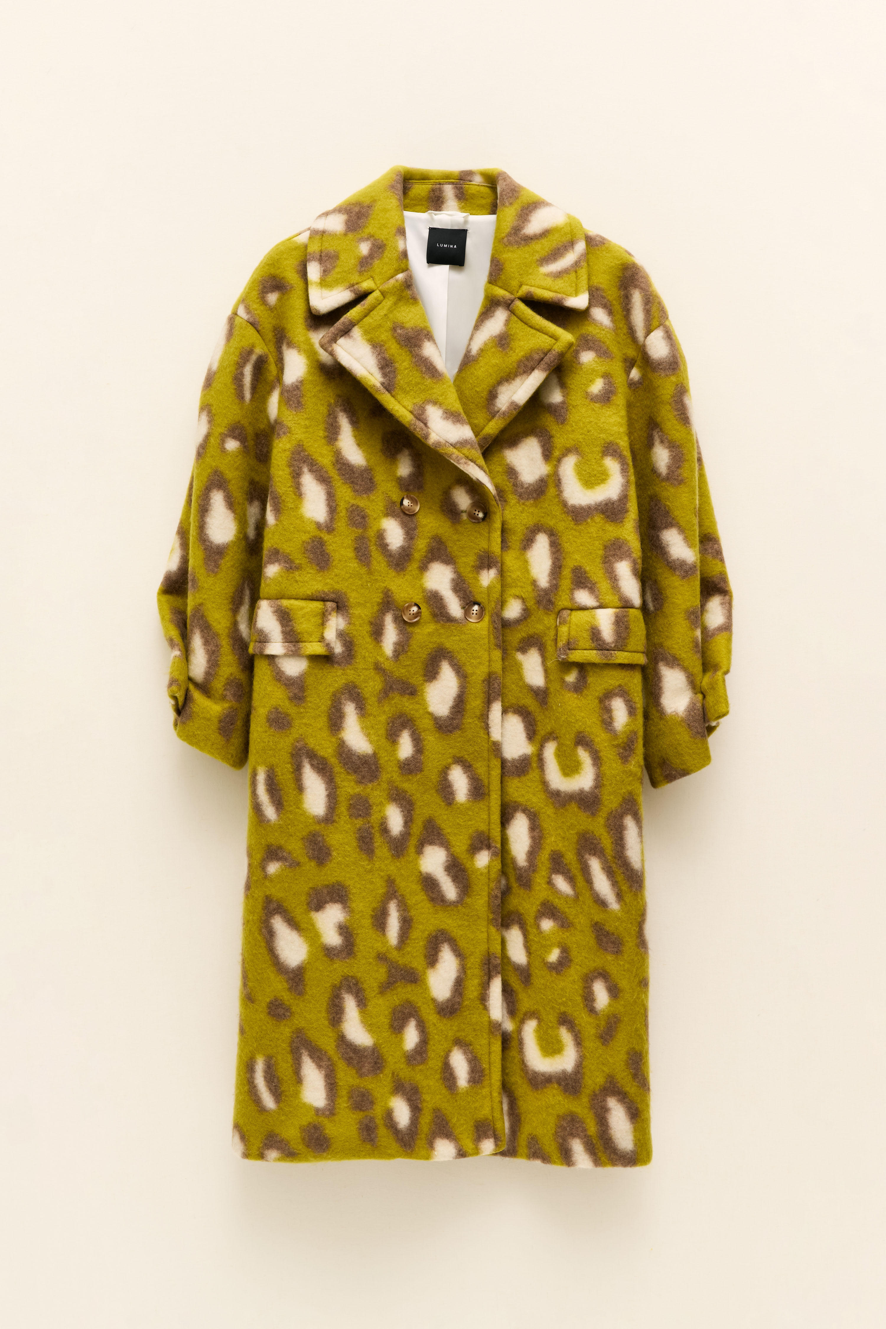 Cappotto in misto lana con fantasia animalier.