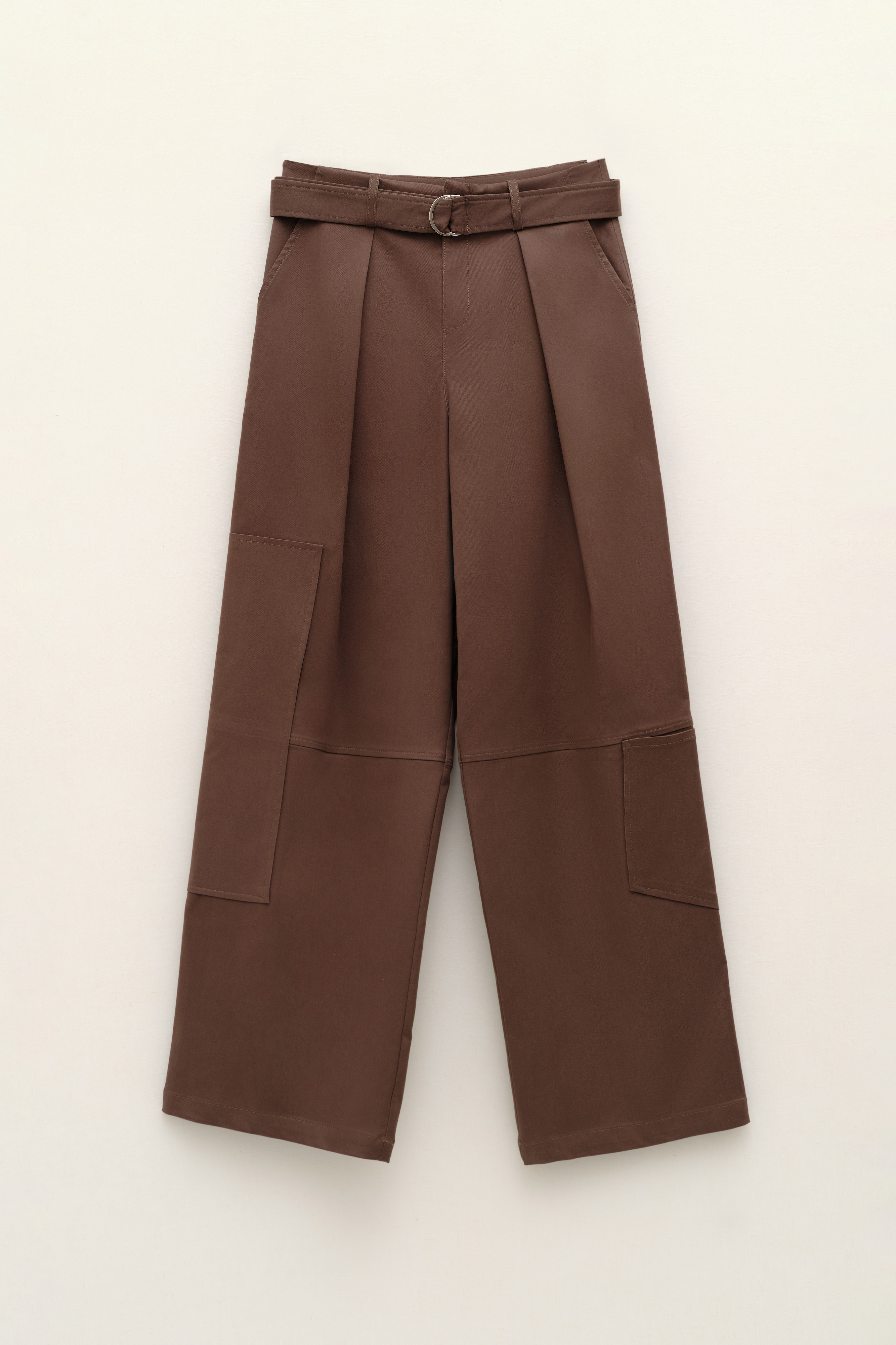 Pantaloni culotte vita alta con passanti per cintura. Presenta elastico in vita sul retro. Gamba ampia. Tasche laterali funzionali. Tasca a filetto sul retro. Chiusura frontale con cerniera, gancio e bottone. Vestibilità regolare, disponibile in taglia S/M, M/L.
