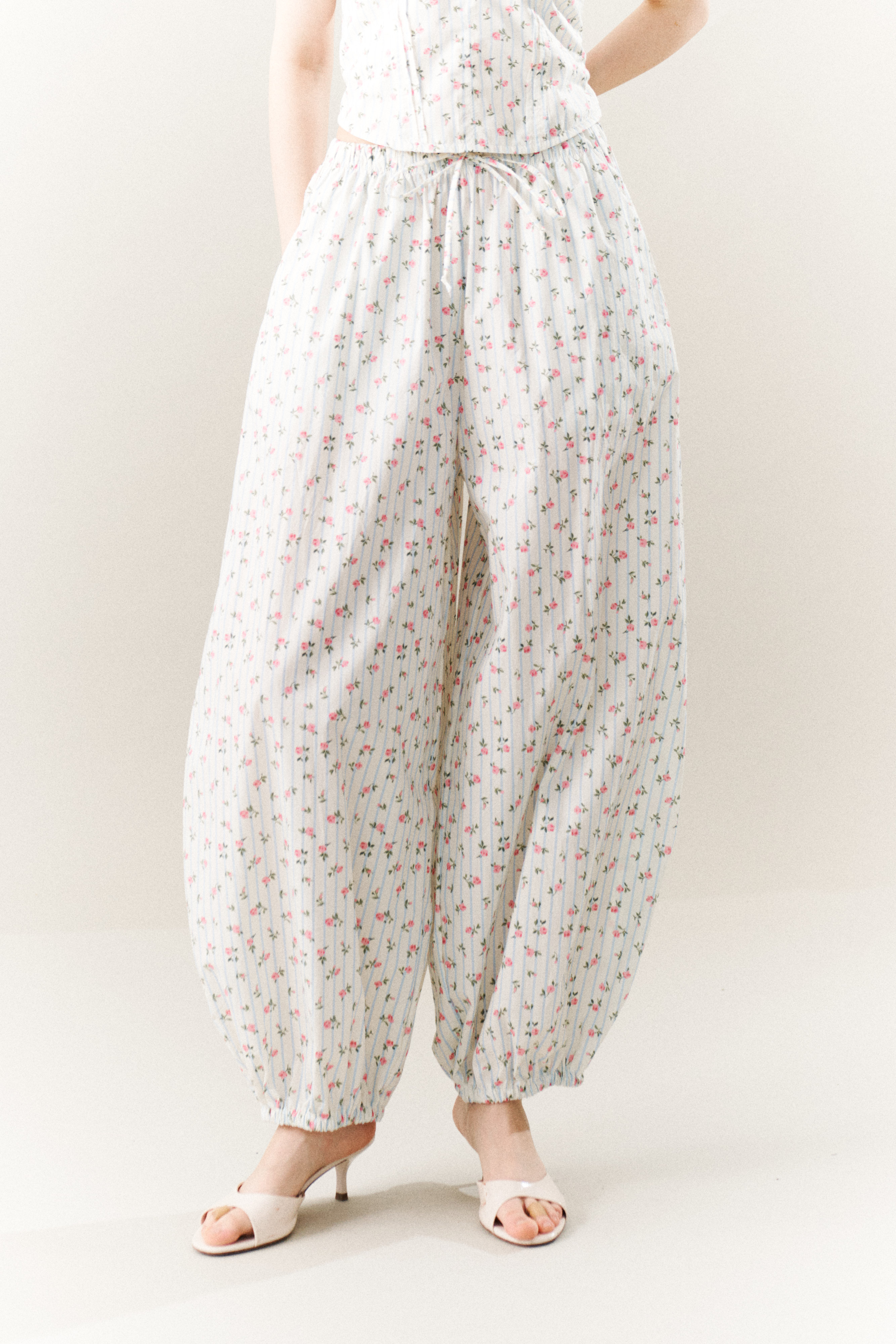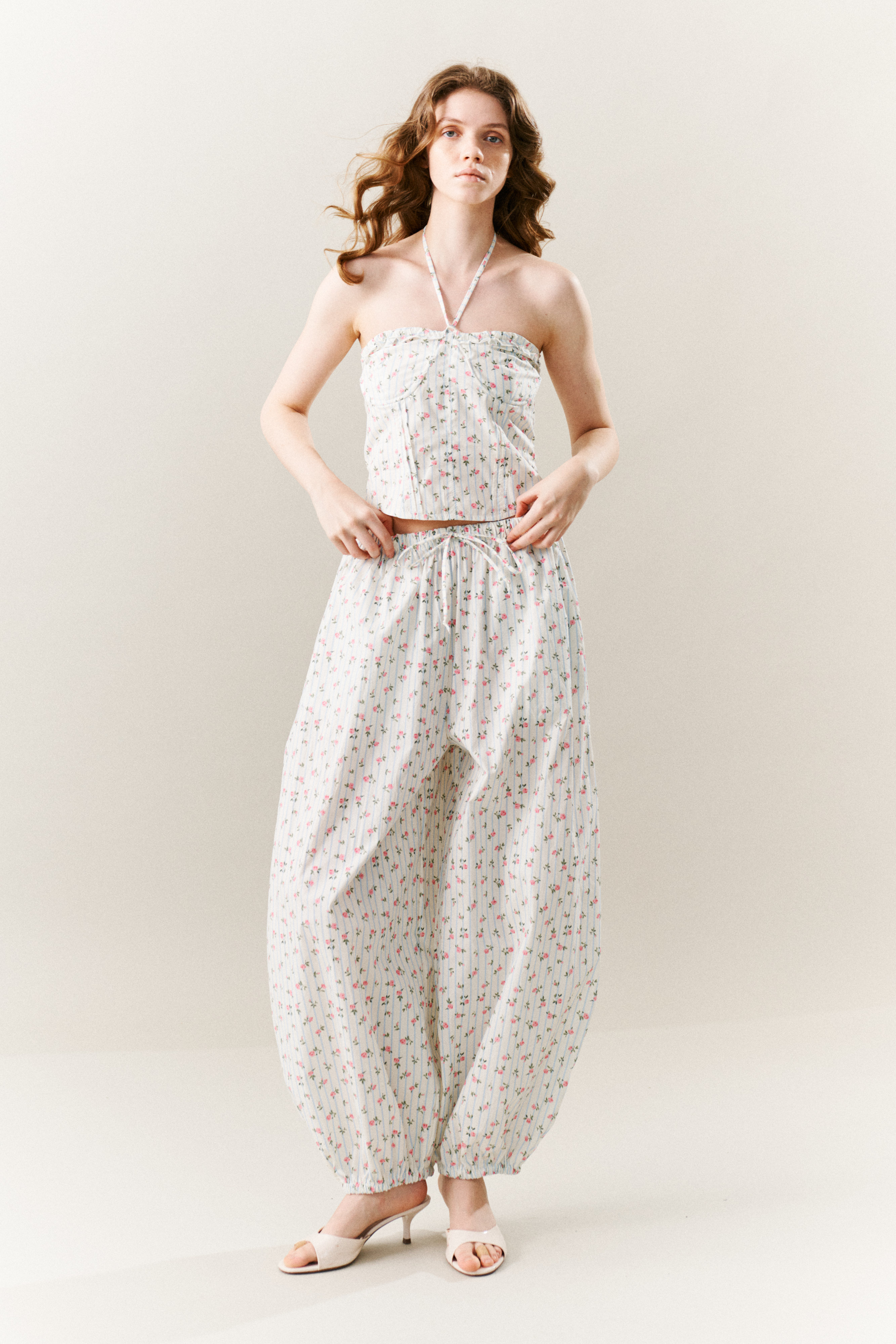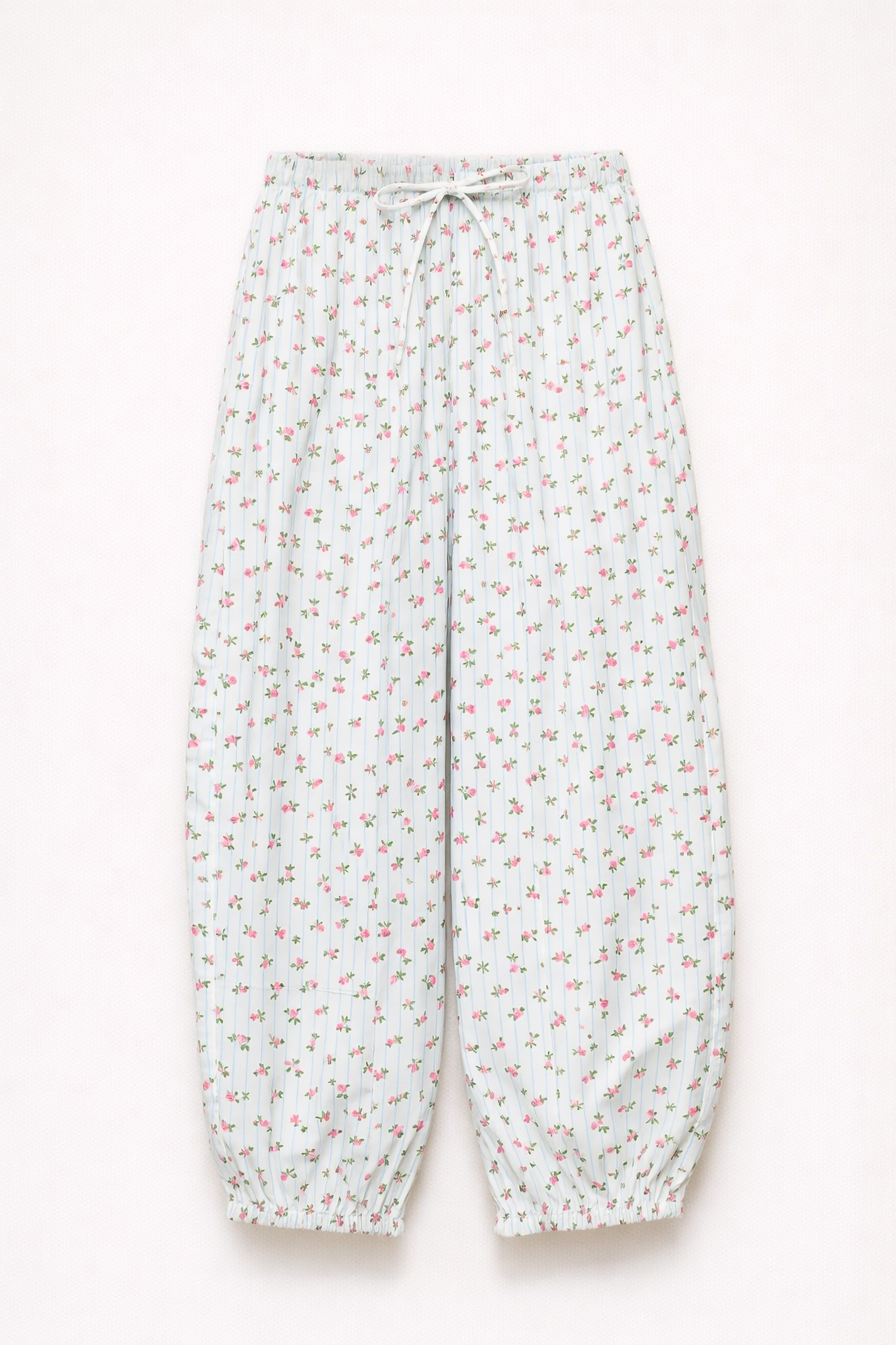Inserti con arricciature sulle gambe. Fondo gamba con elastico.