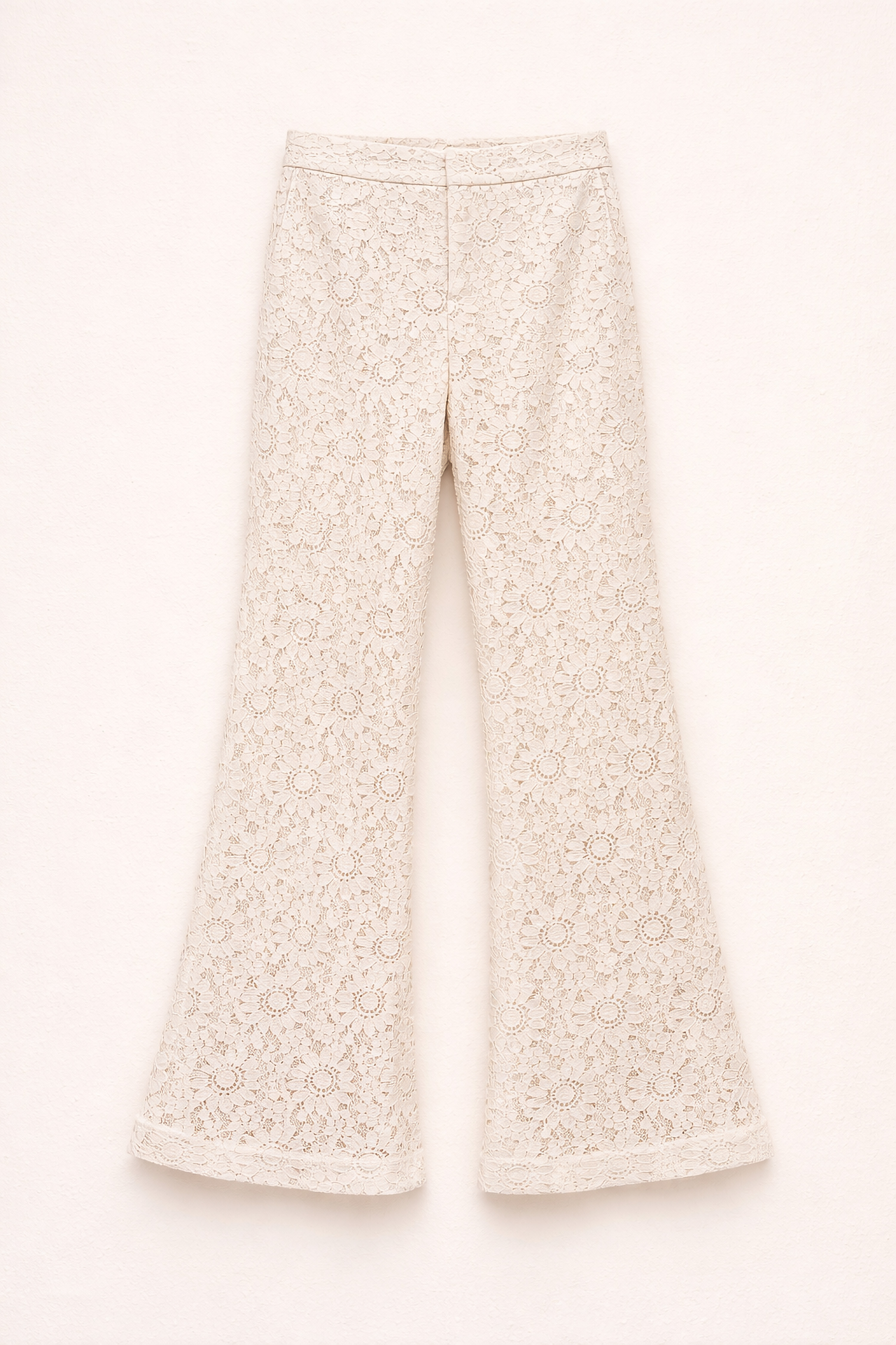 Pantaloni flare vita alta in pizzo floreale.