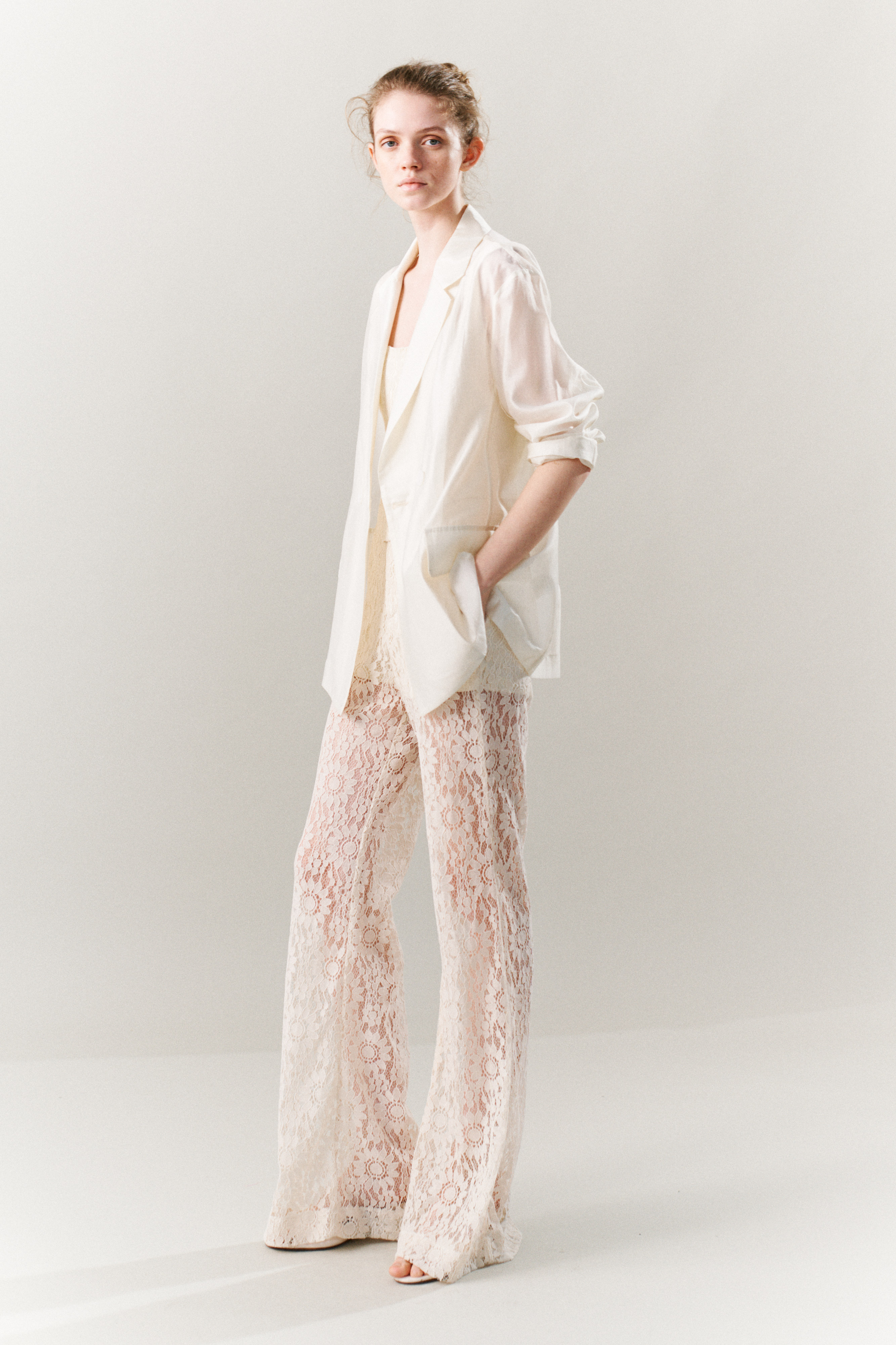 Pantaloni in sangallo con motivo floreale.