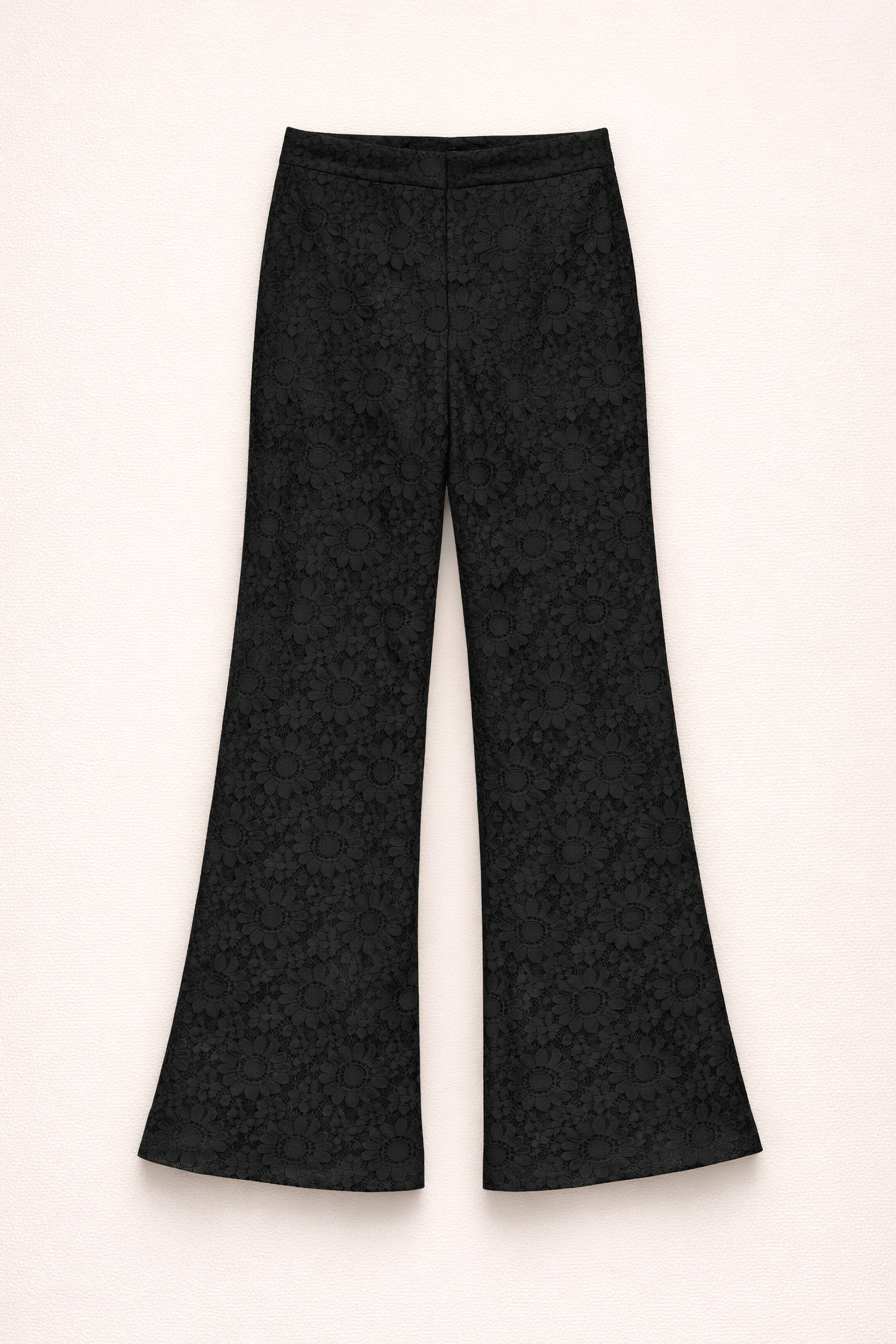 Pantaloni in tessuto con lavorazioni jacquard a righe in rilievo.