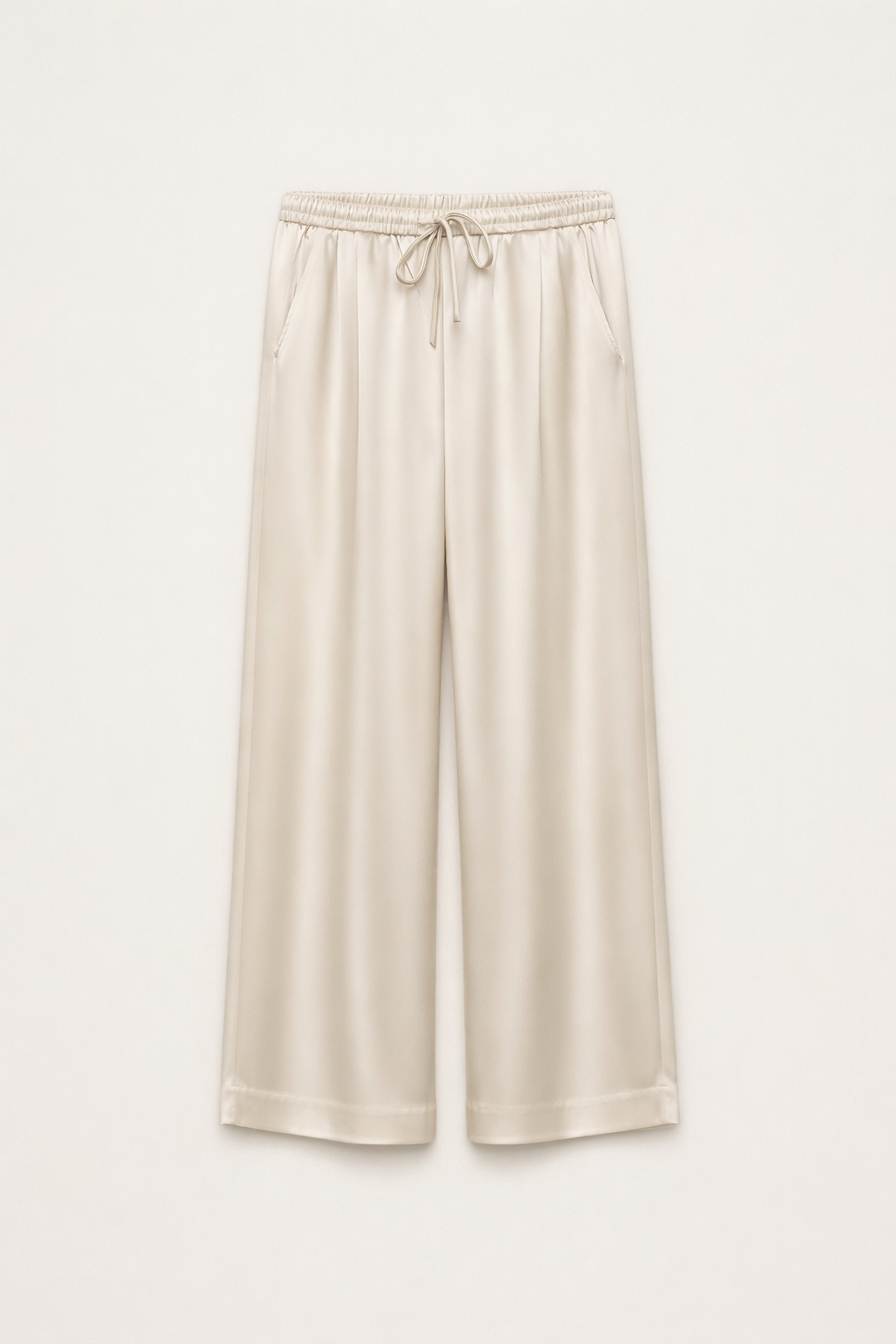 Inserti con arricciature sulle gambe. Fondo gamba con elastico.