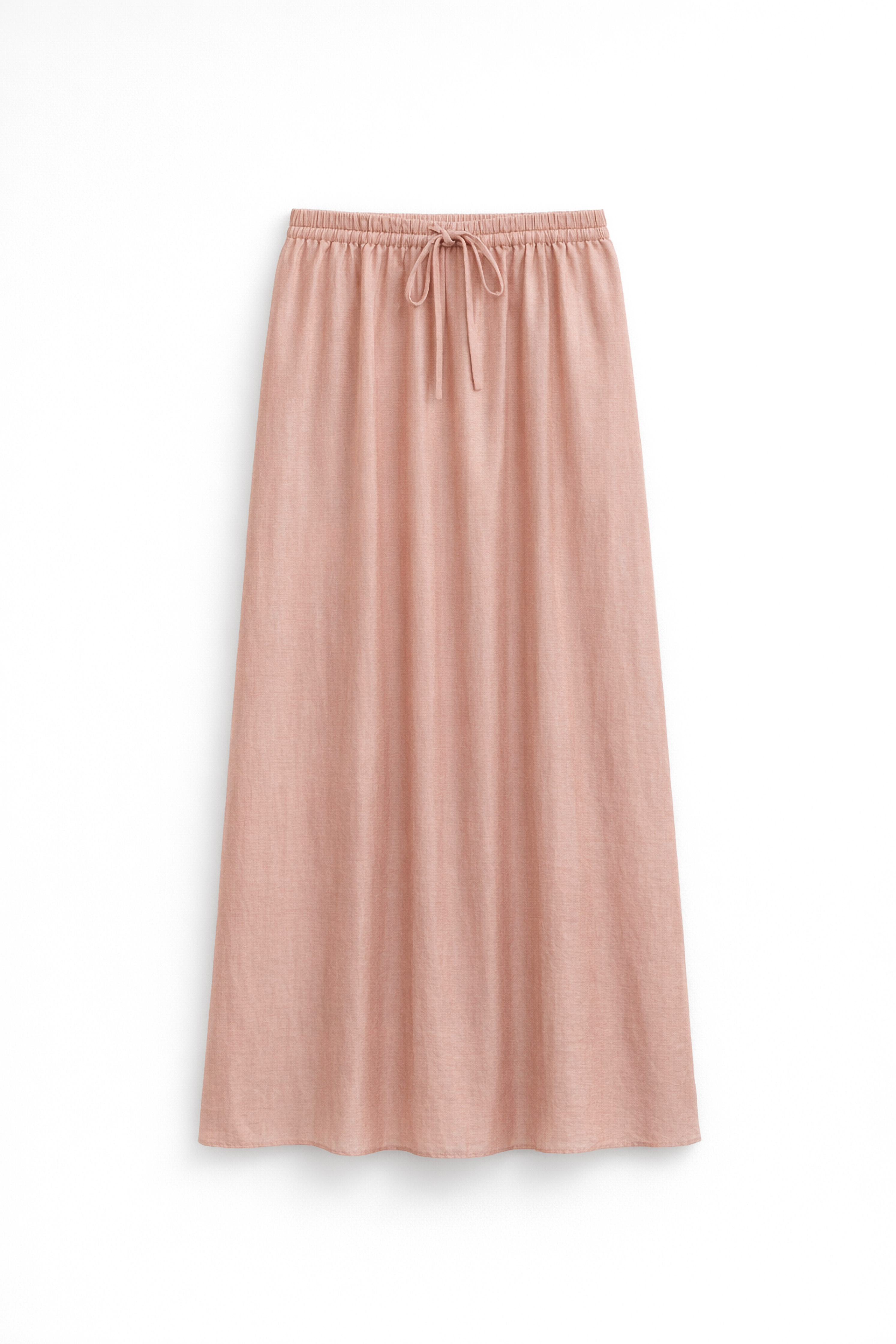 Abito lungo in tessuto leggero misto lino. Scollo a V con coppe. Spalline sottili regolabili. Taglio sotto seno con arricciatura. Gonna lunga ampia e fluida. Fodera interna. Vestibilità regolare, disponibile in taglia S/M, M/L.