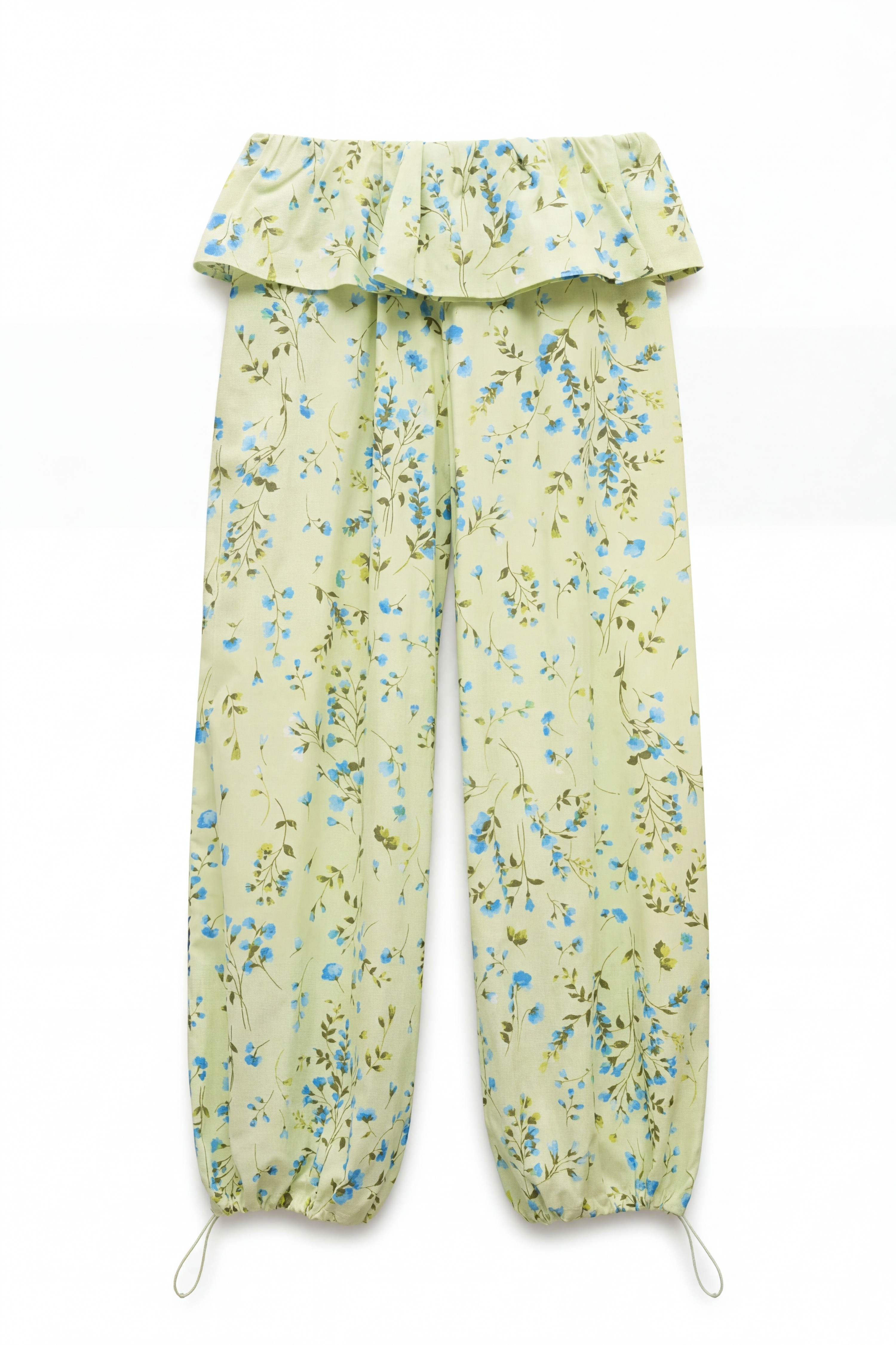 Gamba ampia con fondo arricciato con balza effetto balloon.
