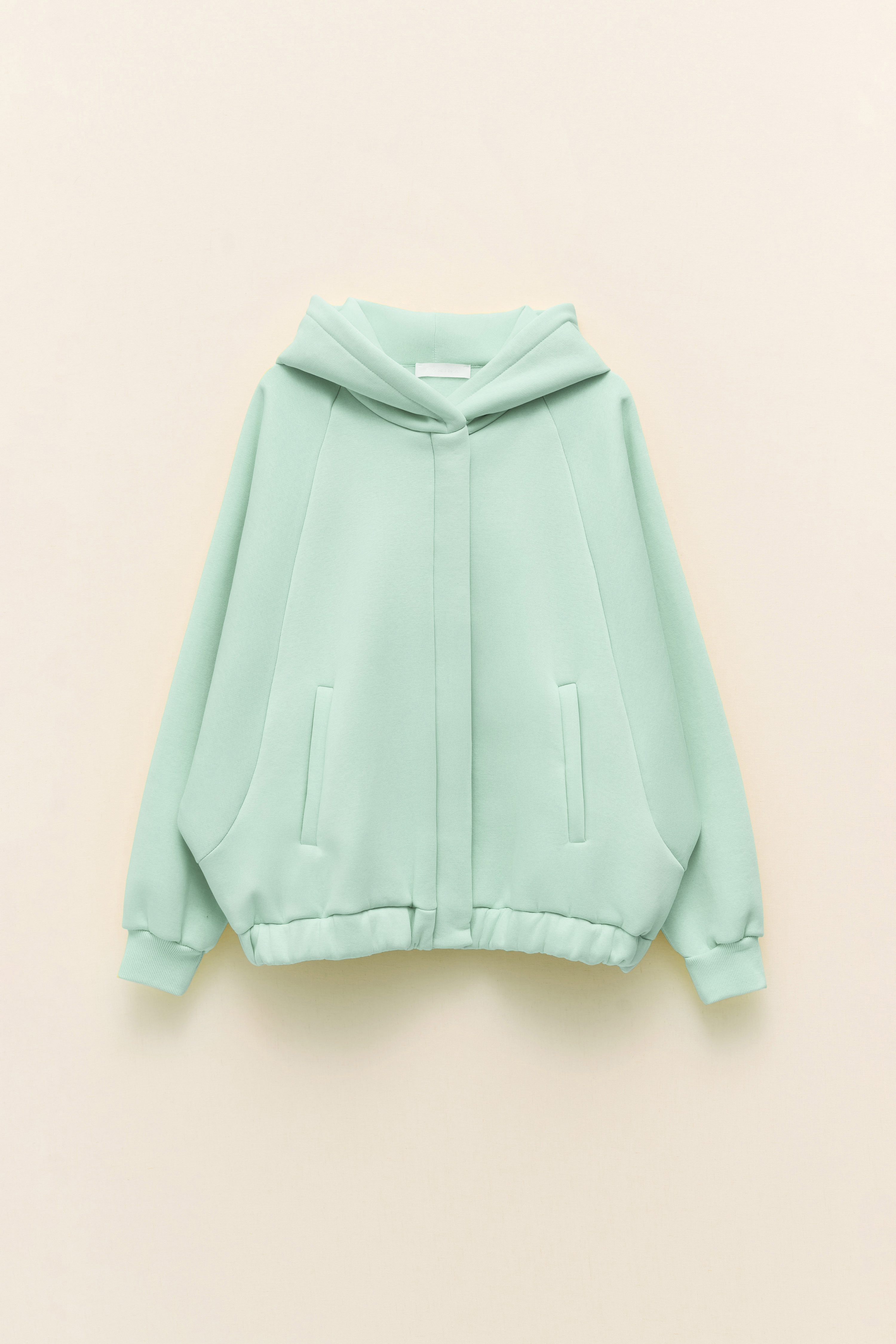 Felpa in pelle scamosciata sintetica con cappuccio.