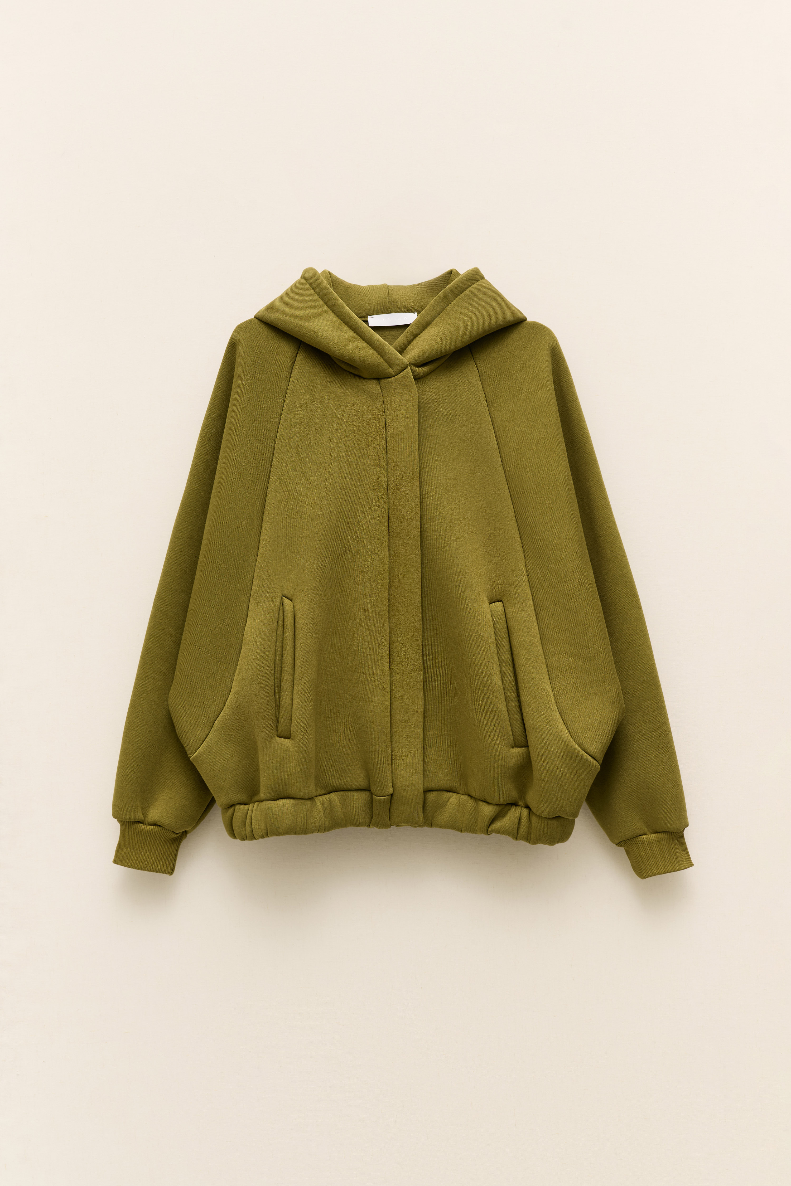 Cerniera sul collo e ampie tasche sul davanti.