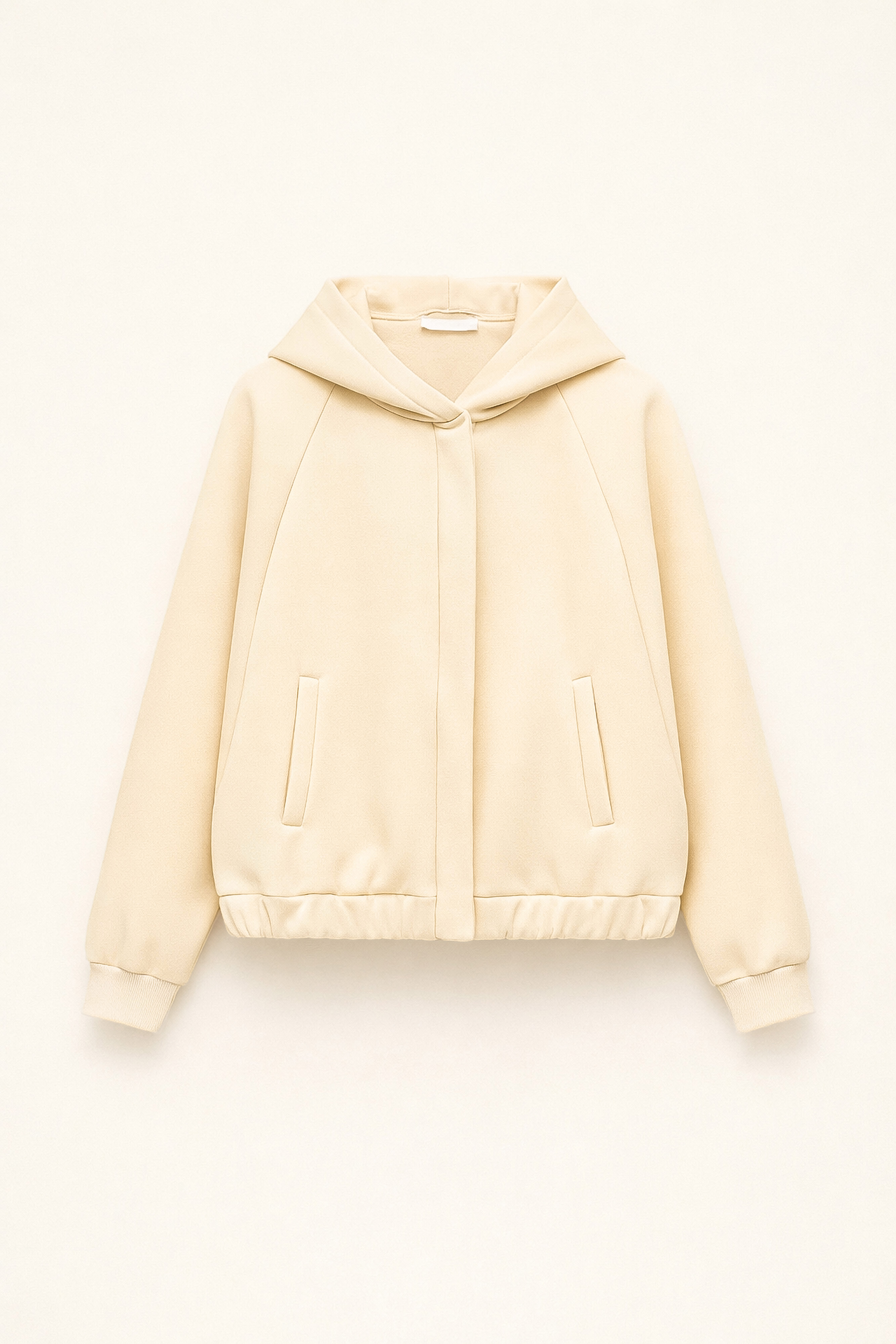 Felpa in pelle scamosciata sintetica con cappuccio.