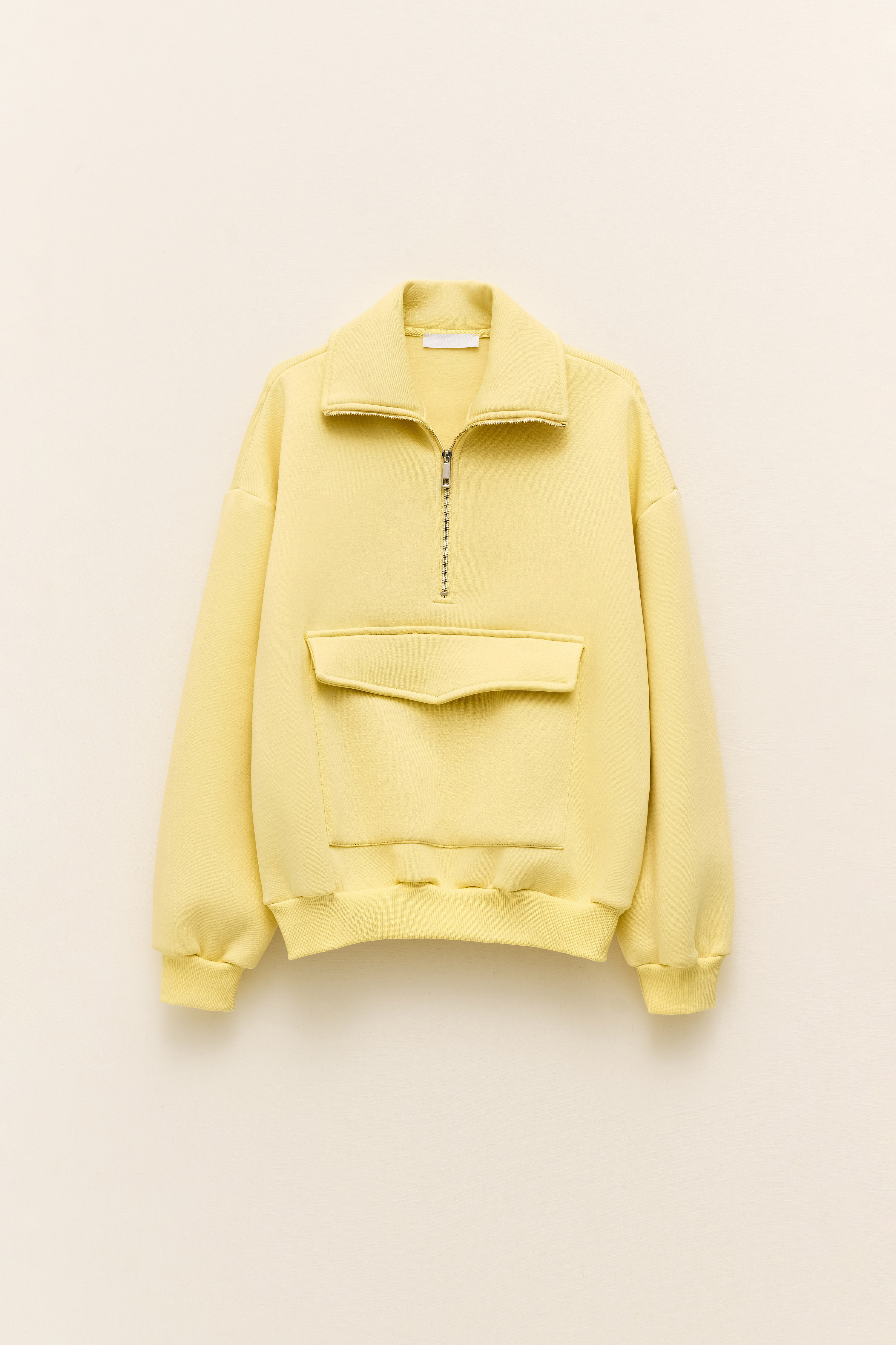 Cerniera sul collo e ampie tasche sul davanti.