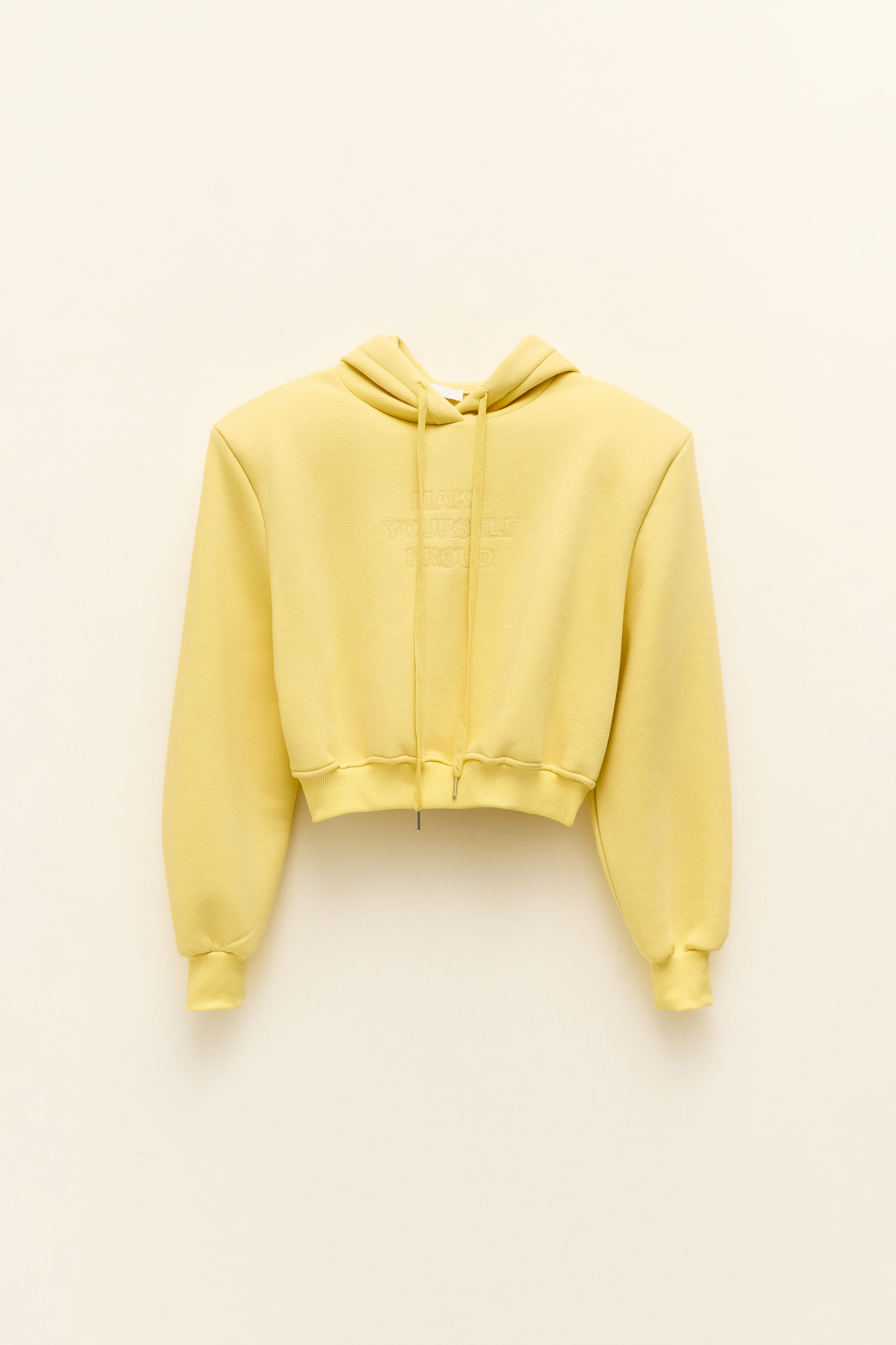 Felpa in pelle scamosciata sintetica con cappuccio.