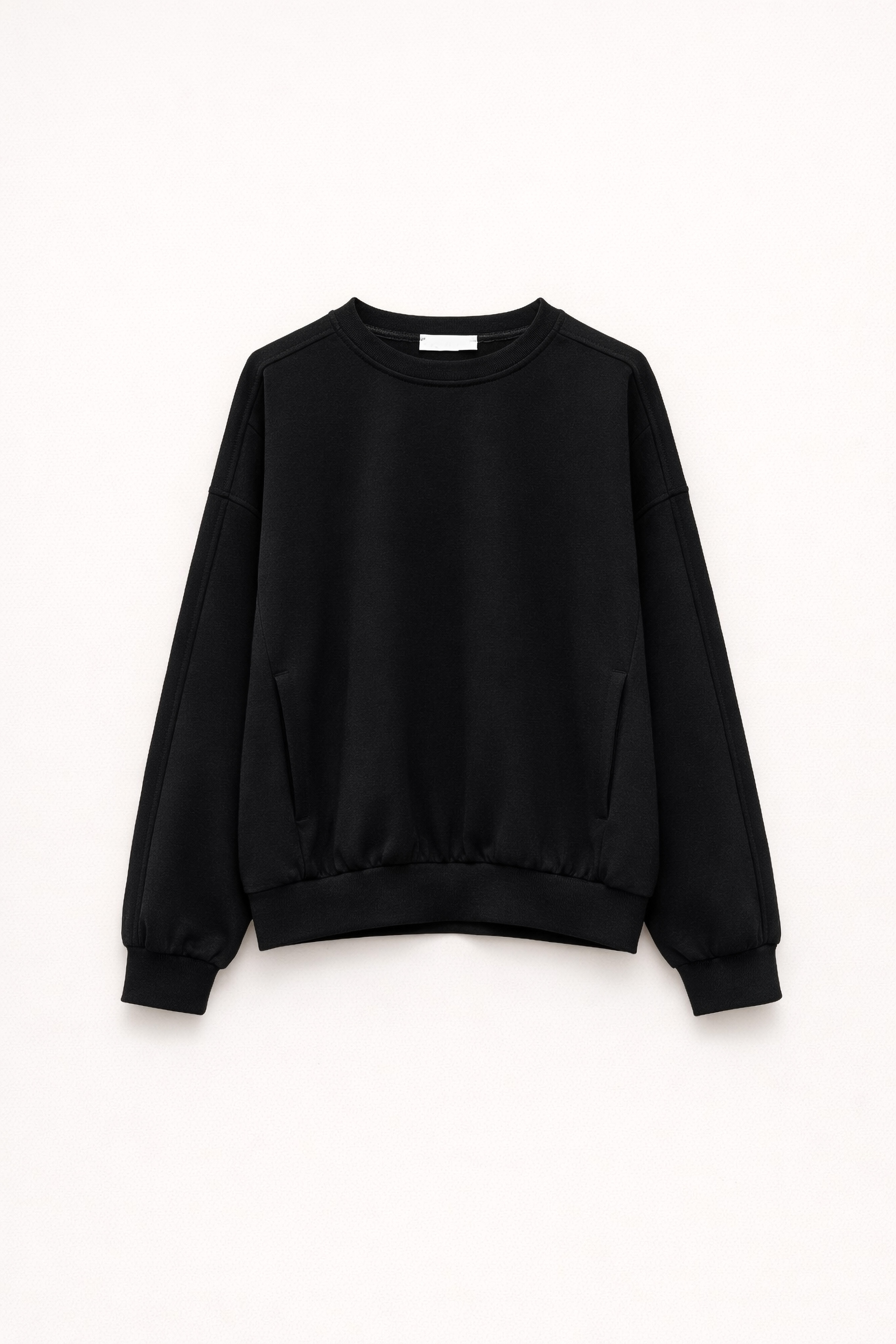 Maniche lunghe con elastico. Presenta coulisse allo scollo