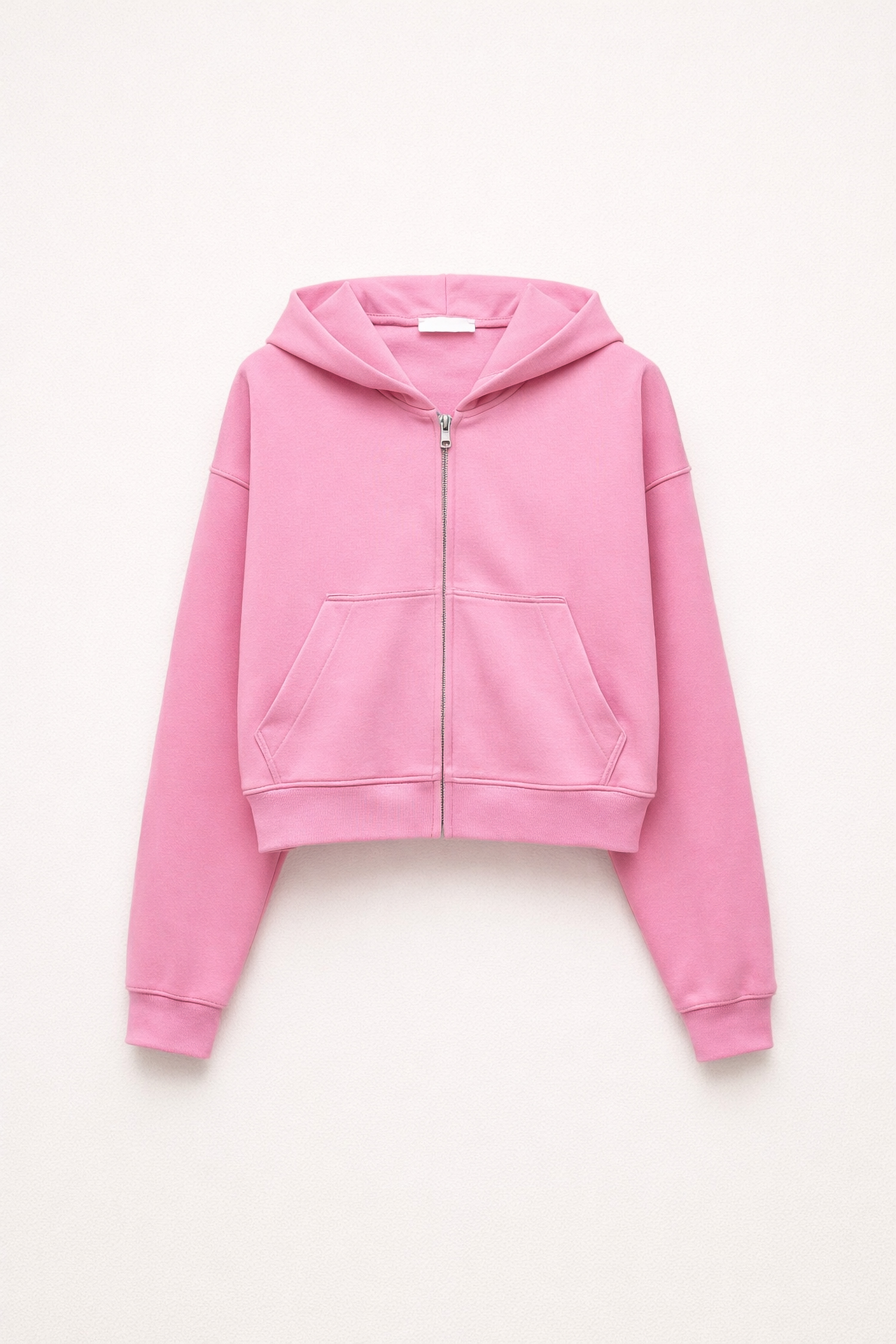Felpa in pelle scamosciata sintetica con cappuccio.