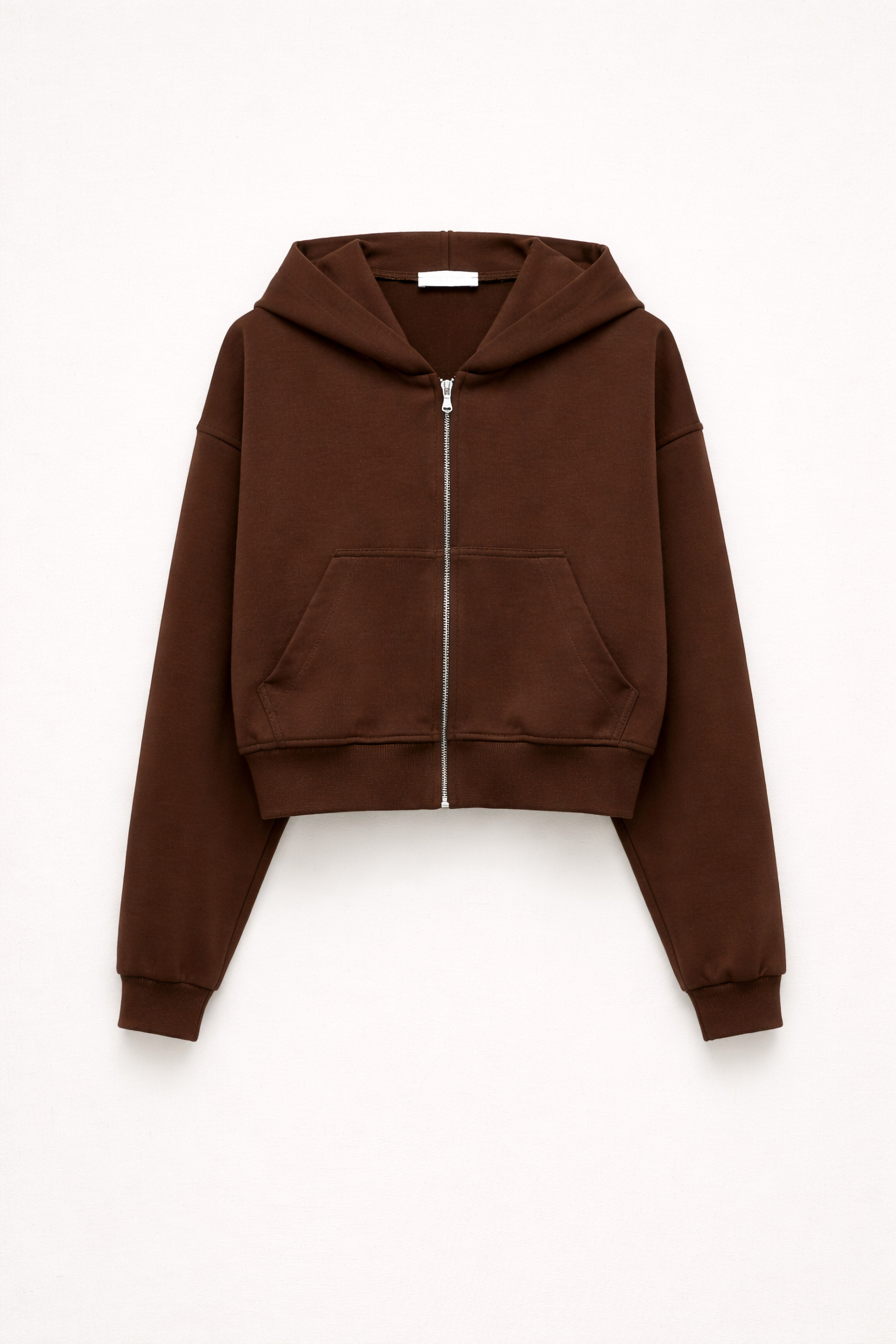 Felpa in pelle scamosciata sintetica con cappuccio.