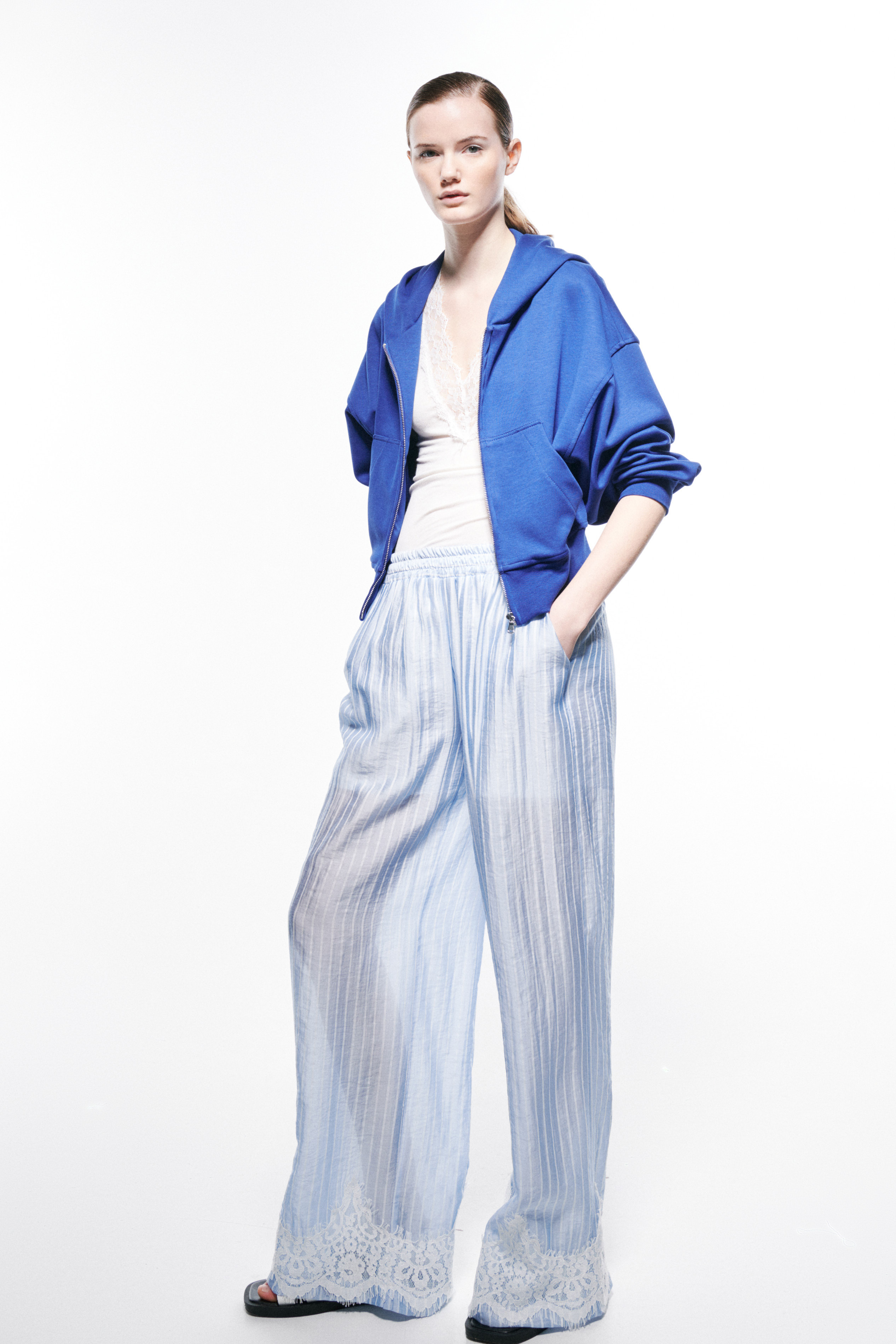 Maniche lunghe con elastico. Presenta coulisse allo scollo