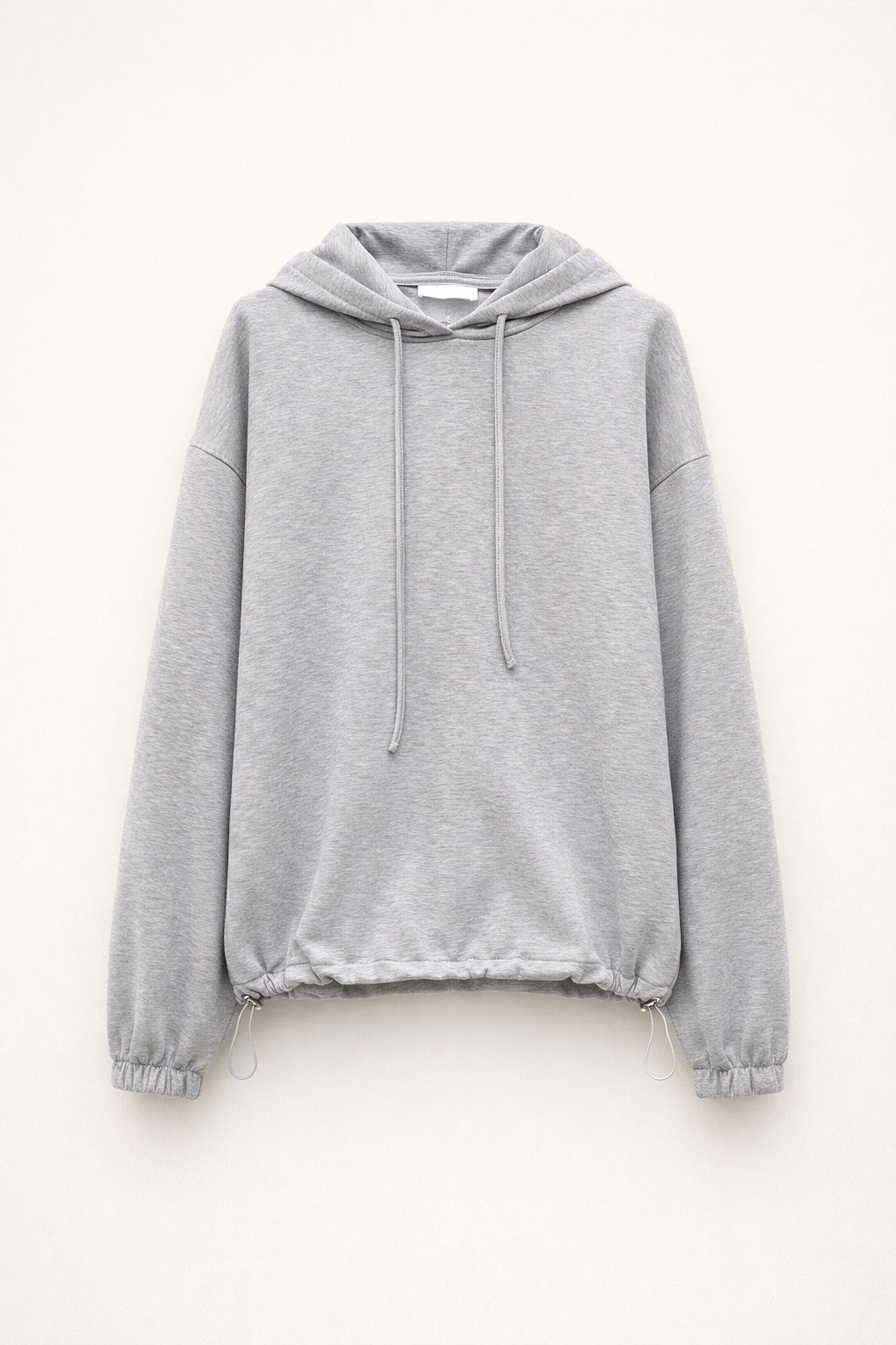 Maniche lunghe con elastico. Presenta coulisse allo scollo