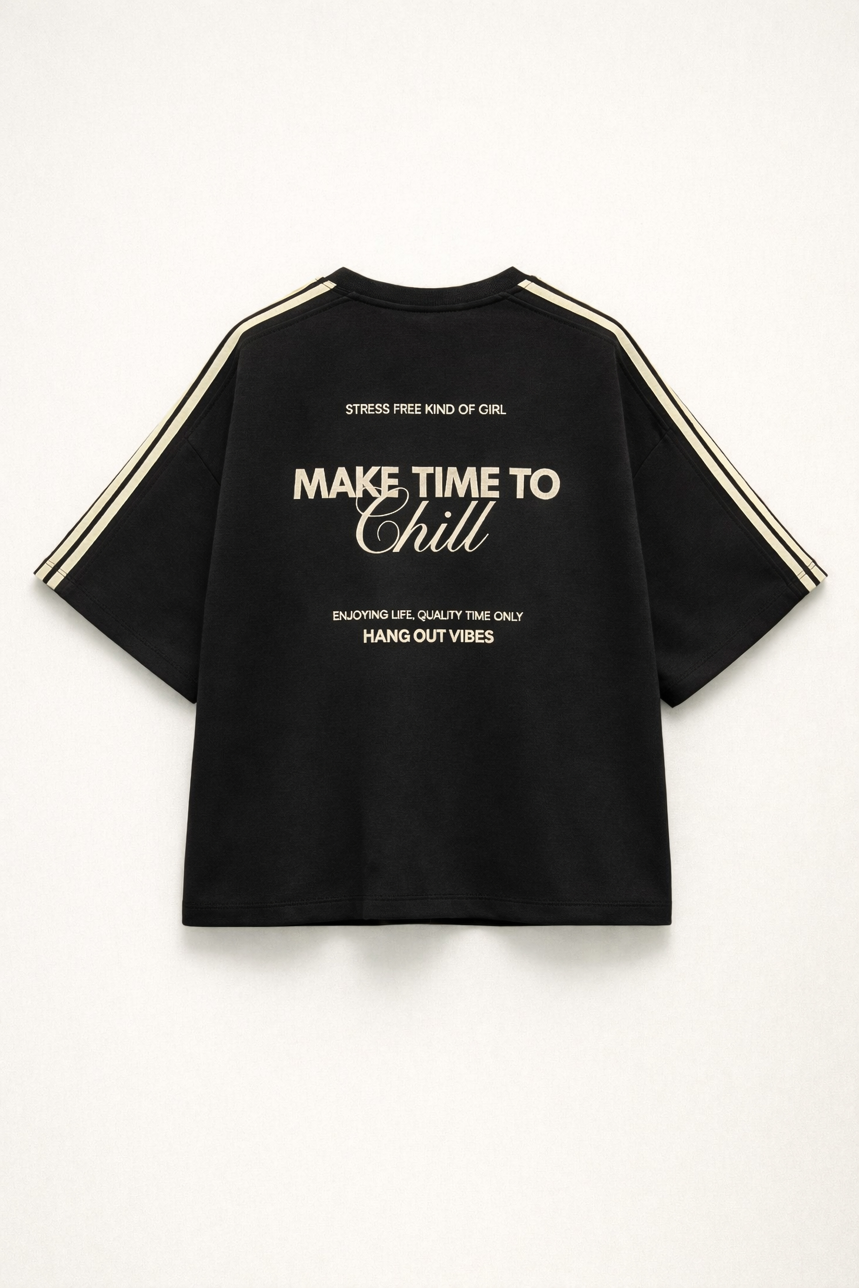 Collo rifinito a costine. Stampa lettering sul davanti e sul retro.