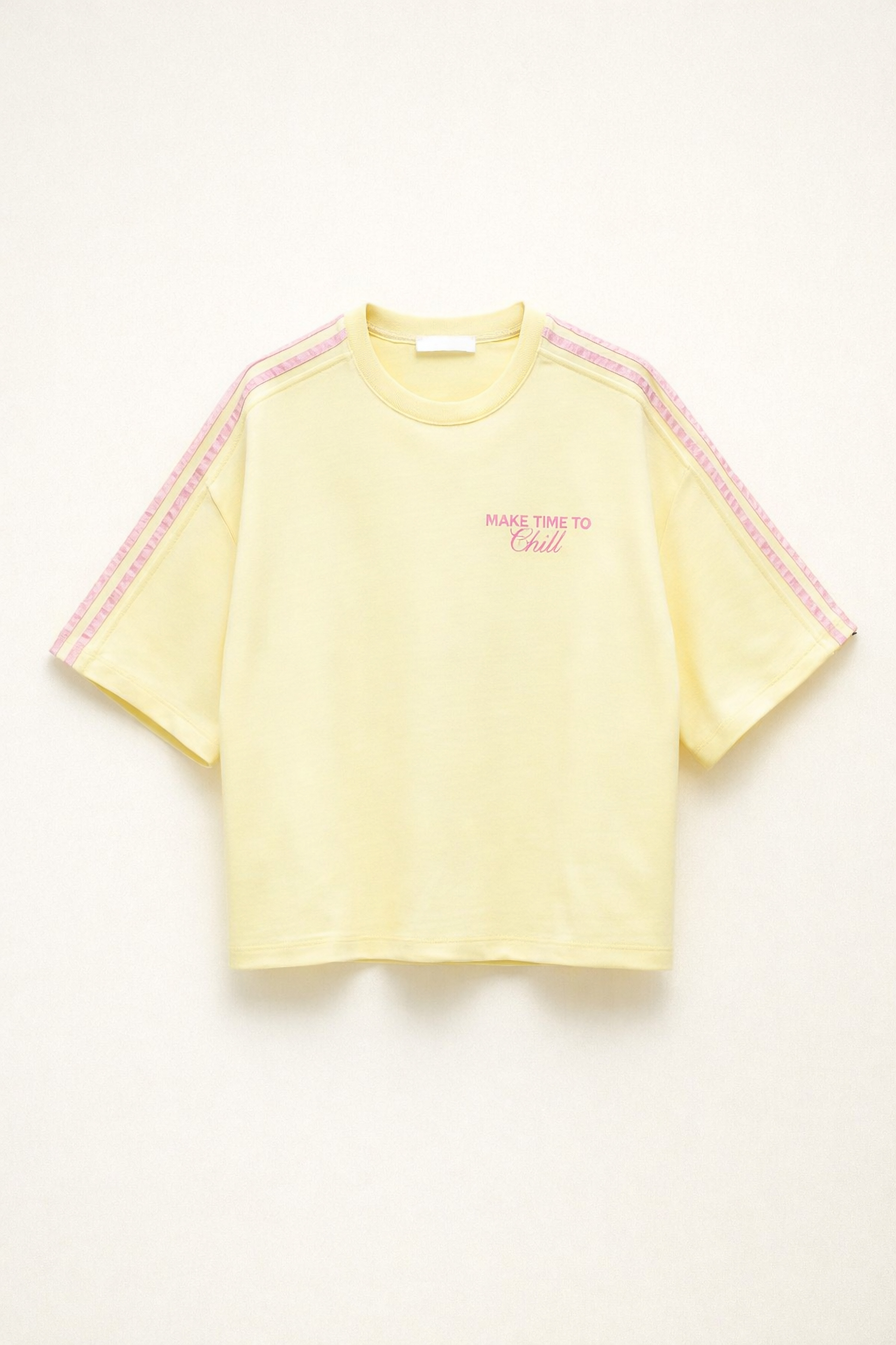 Collo rifinito a costine. Stampa lettering sul davanti e sul retro.