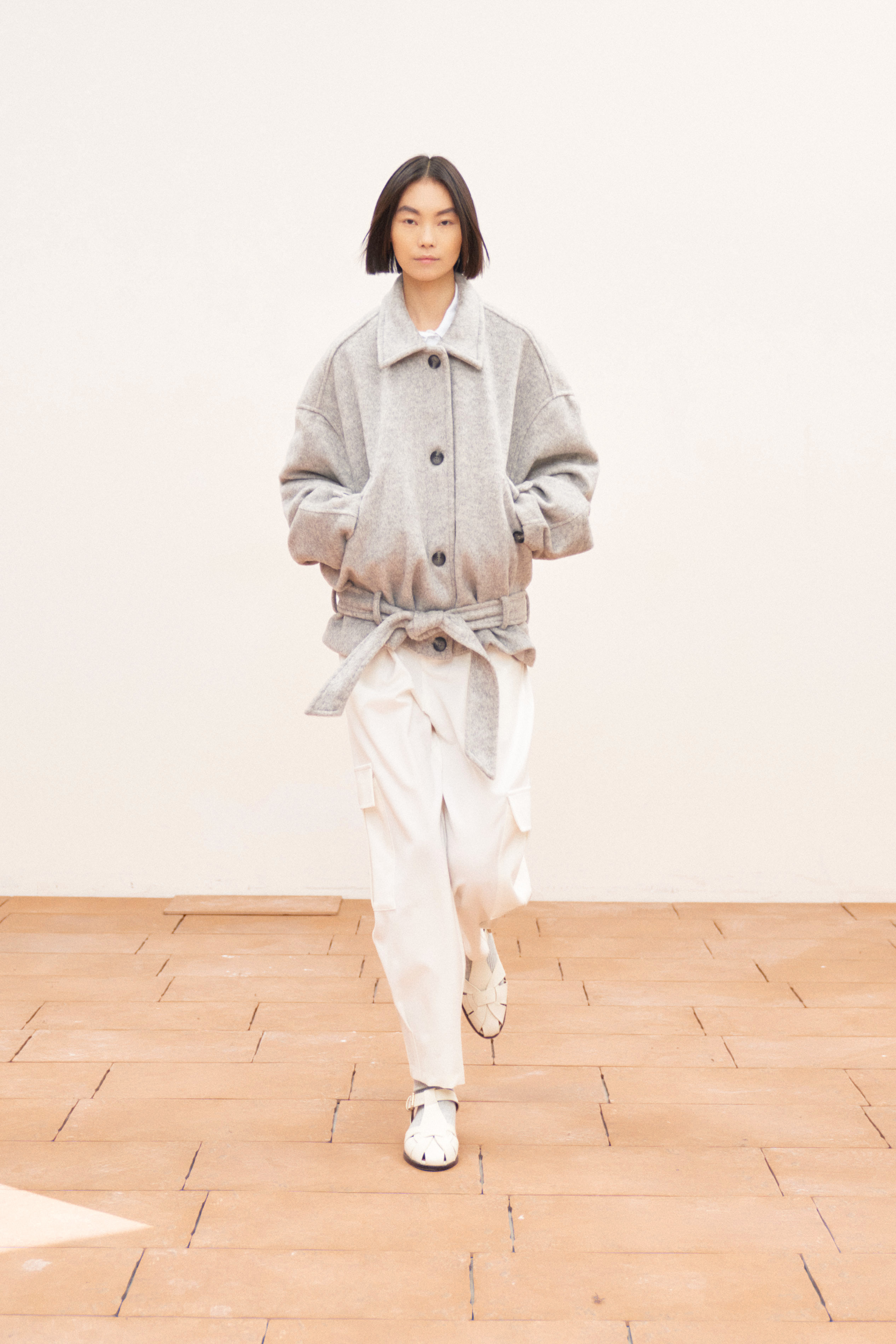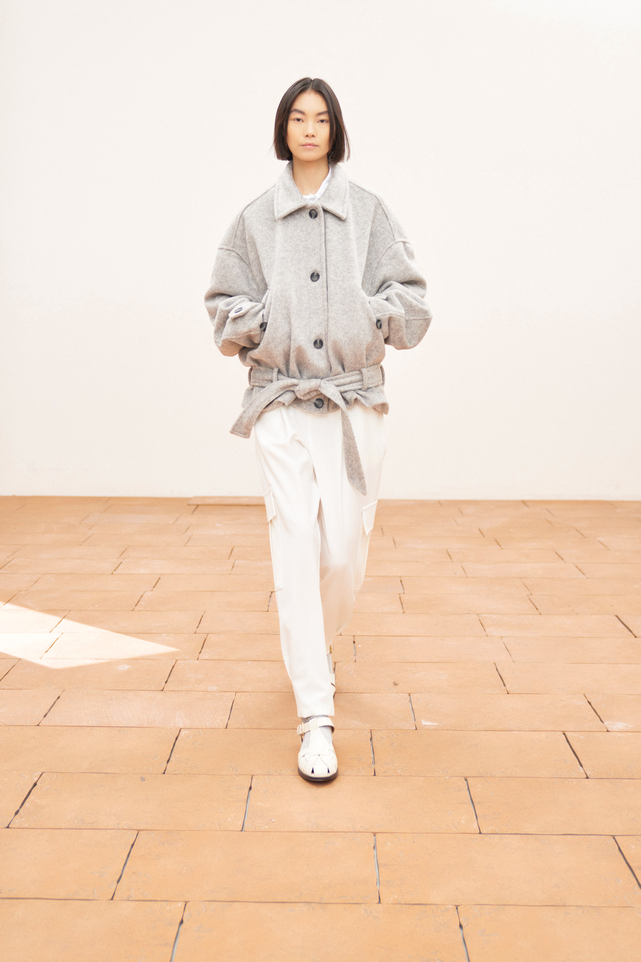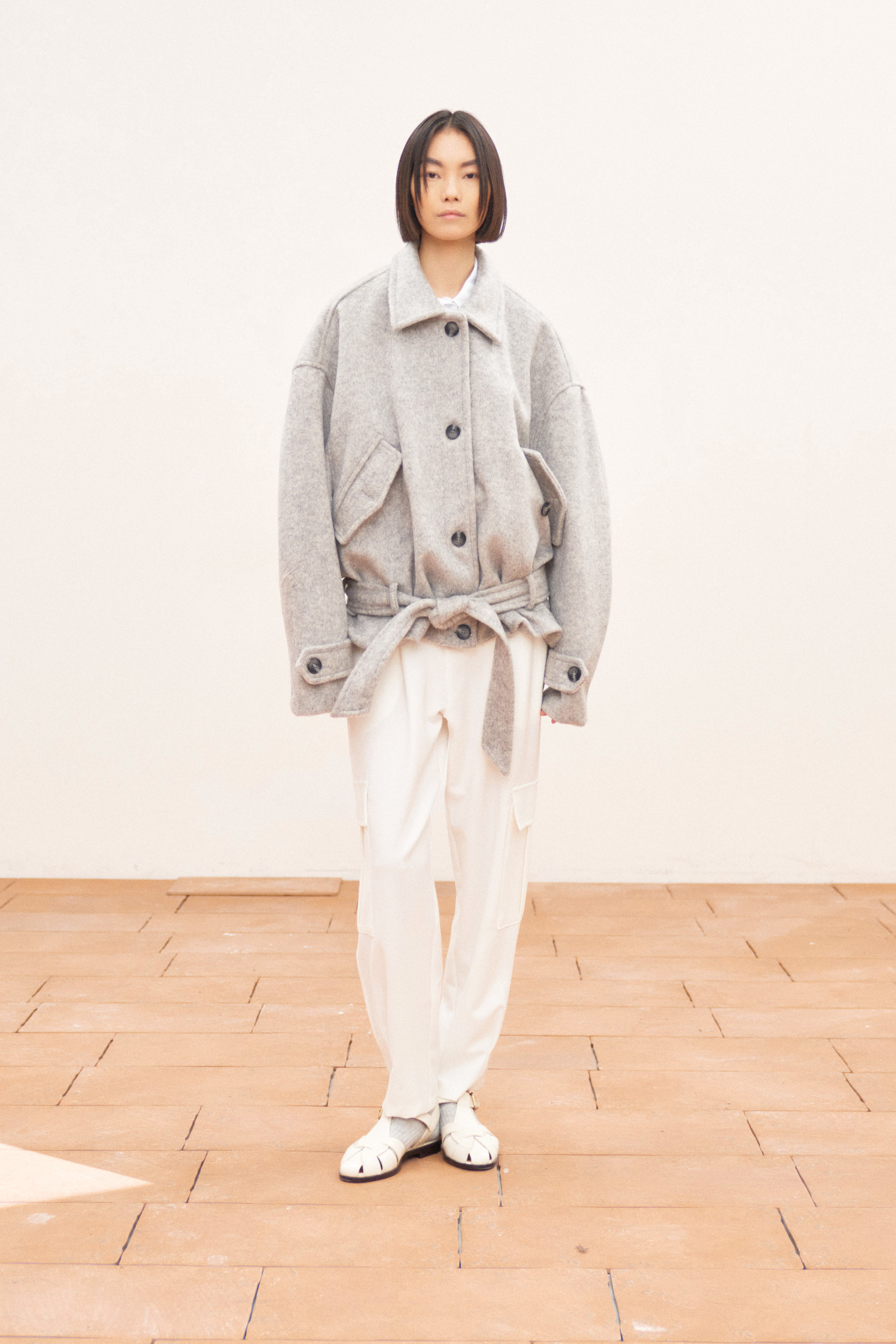 Colletto a punta. Ampie tasche sul davanti.