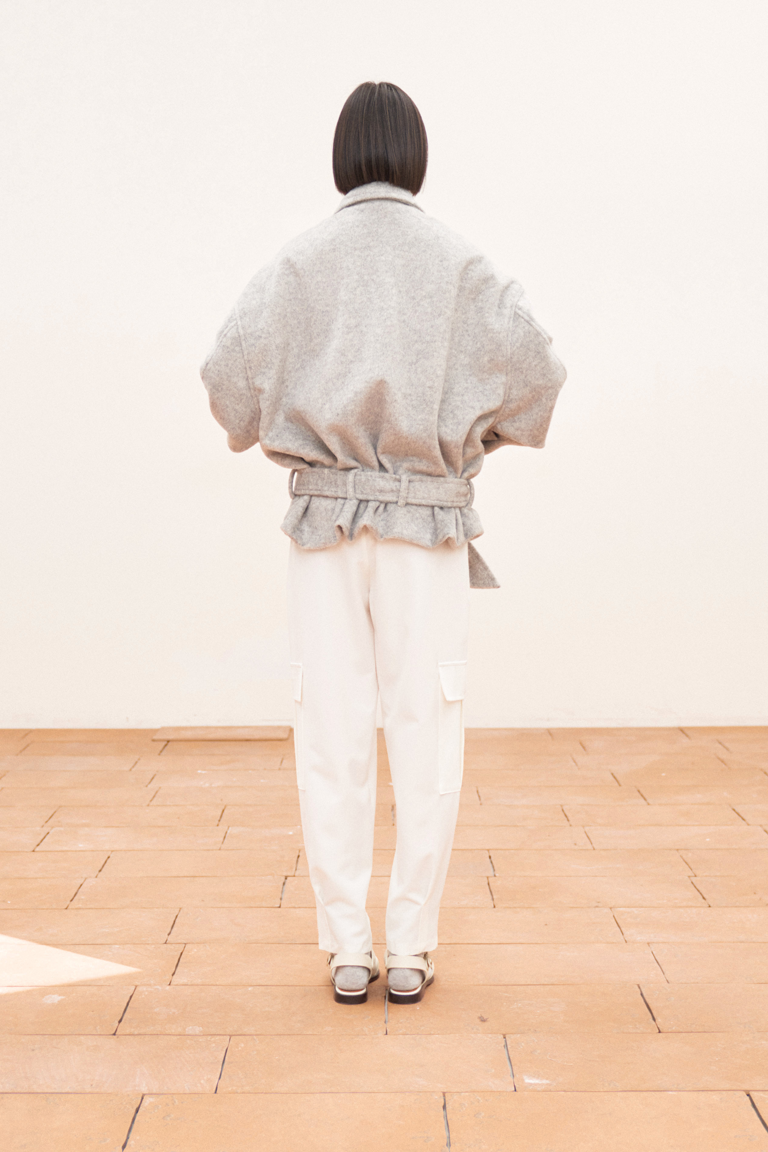 Collo a revers e spalle morbide.
