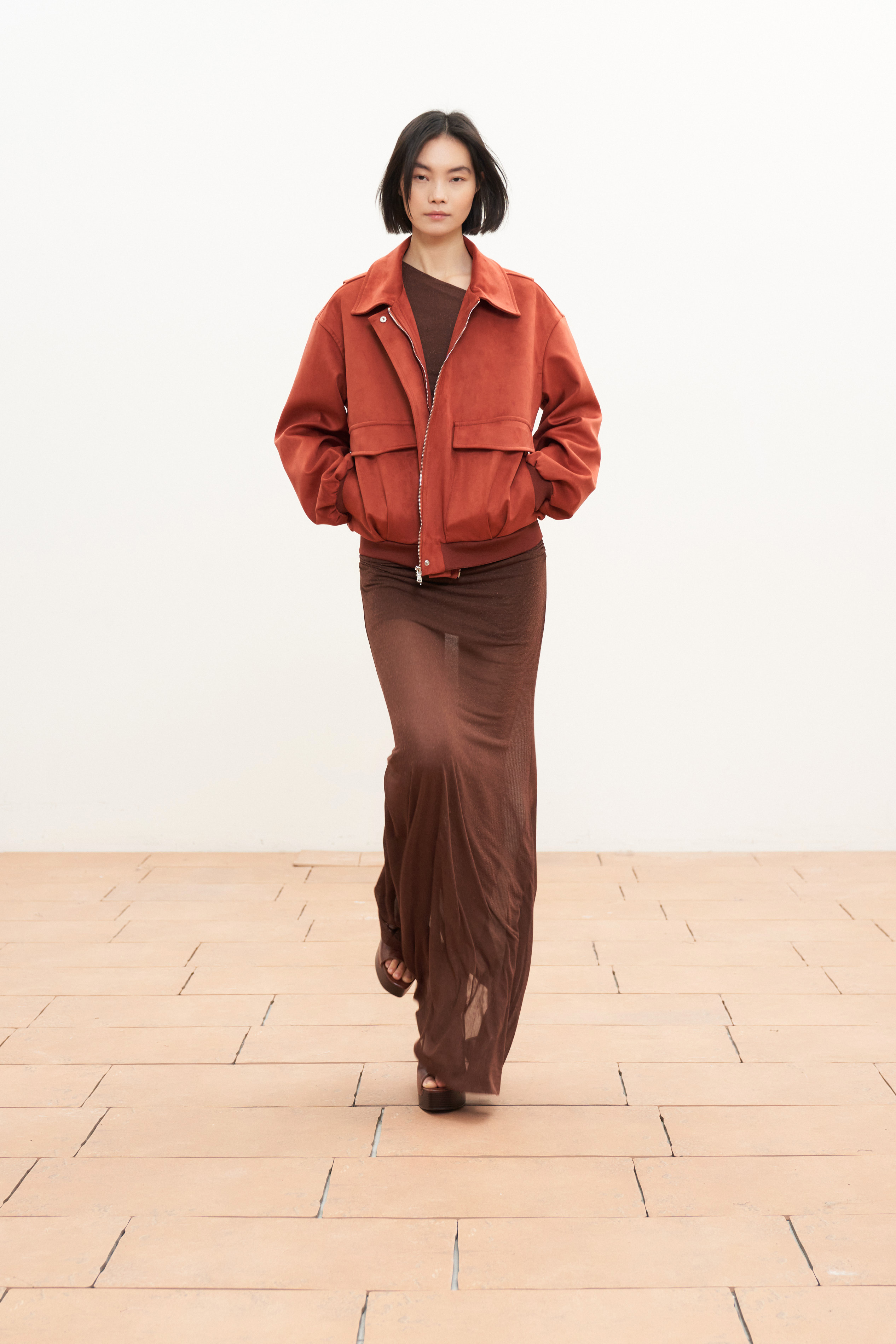 Colletto a punta. Ampie tasche sul davanti.