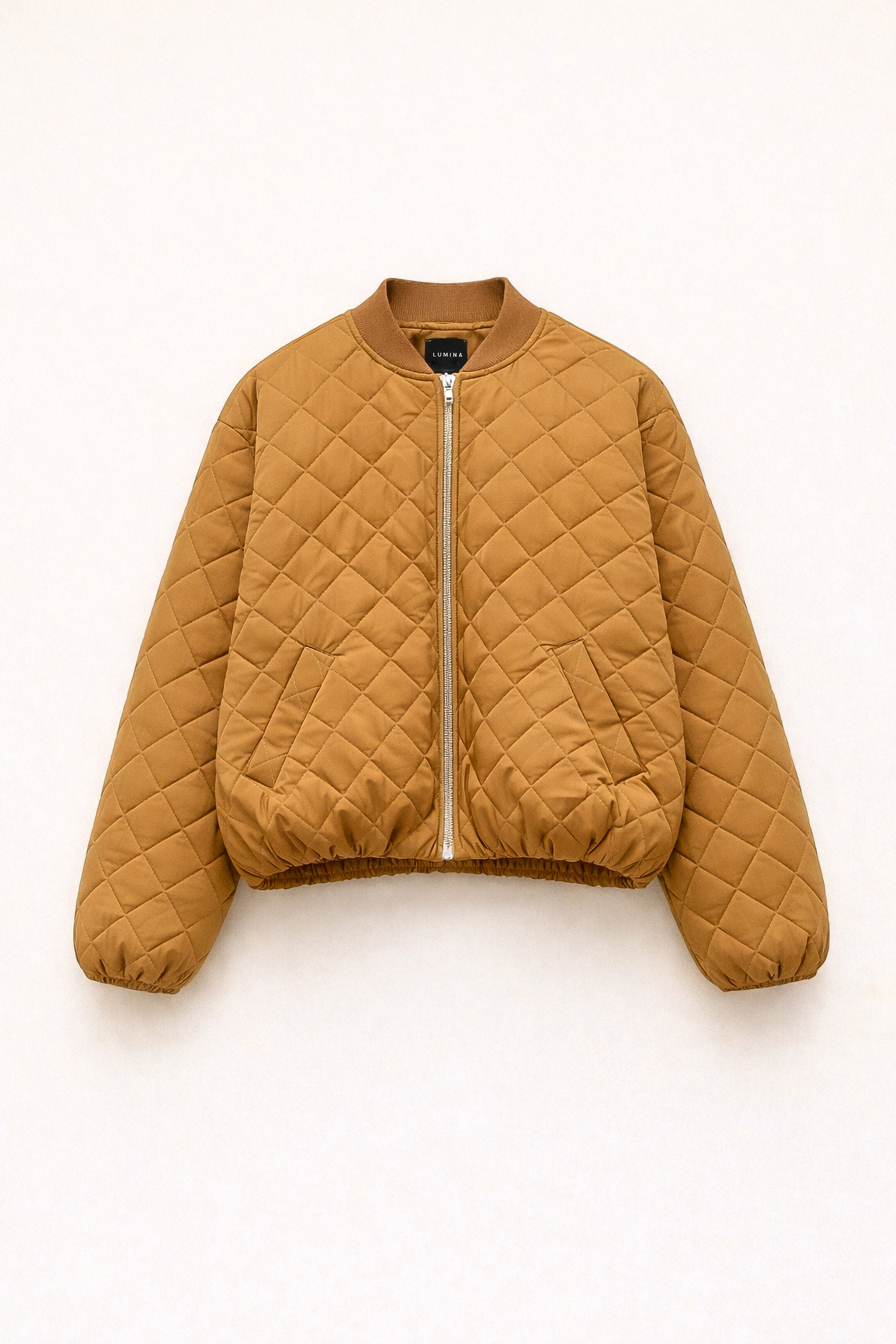 Giacca trapuntata a maniche lunghe. Chiusura frontale con cerniera. Collo rifinito in costina. Fondo e polsini elasticizzati. Tasche laterali inserire. Fodera interna. Vestibilità regolare, disponibile in taglia UNICA.